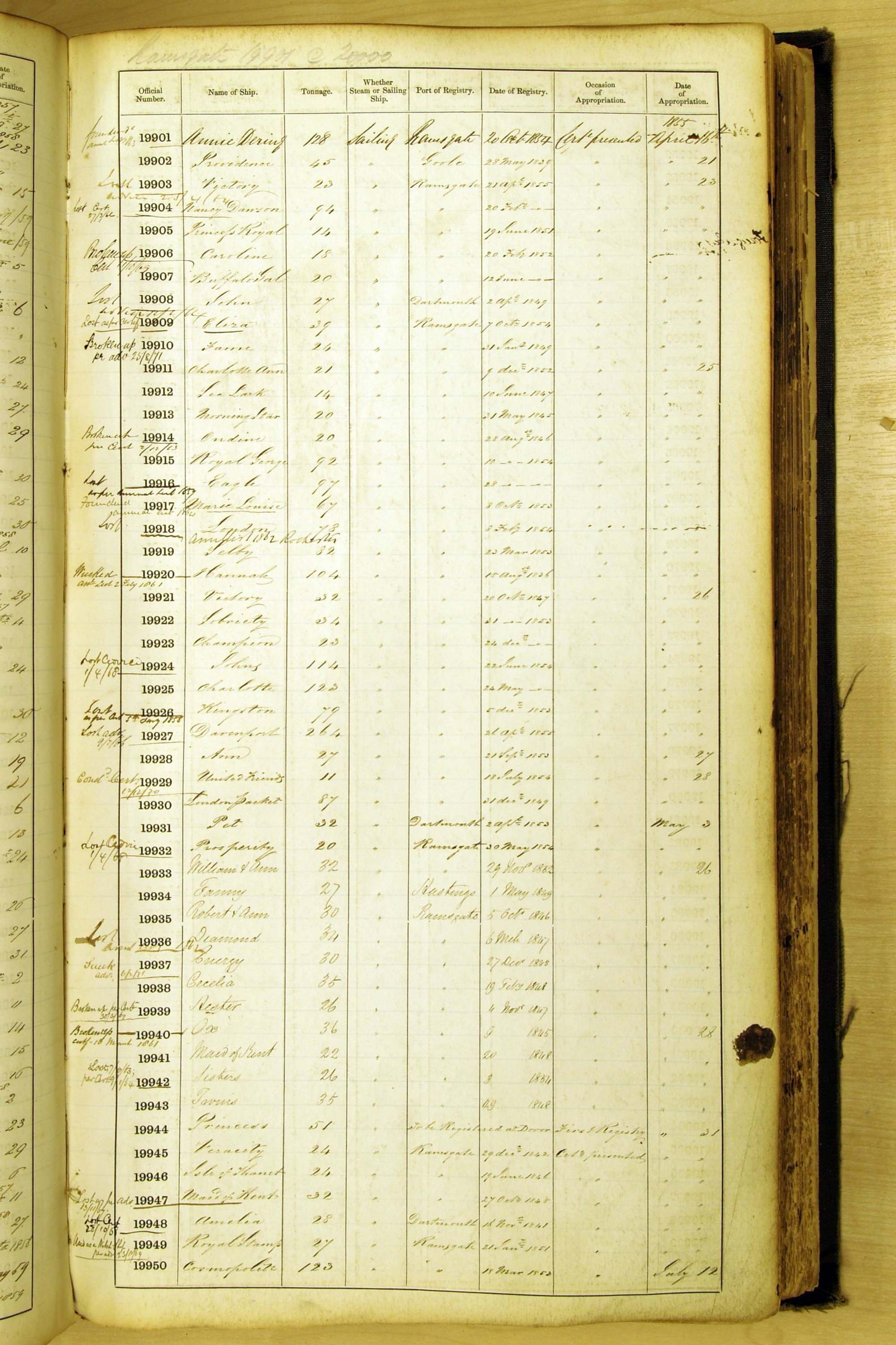 Bear in mind that the ships names in the Appropriation Books are not the definitive name or spelling of the name, even though these are the central records for the whole system. As you can see, the entries are hand-written and derived from hand-written returns made by the various ports, themselves based on the hand-written shipping registers, based on what the port officials thought the person registering the ship was saying or had hand-written down.