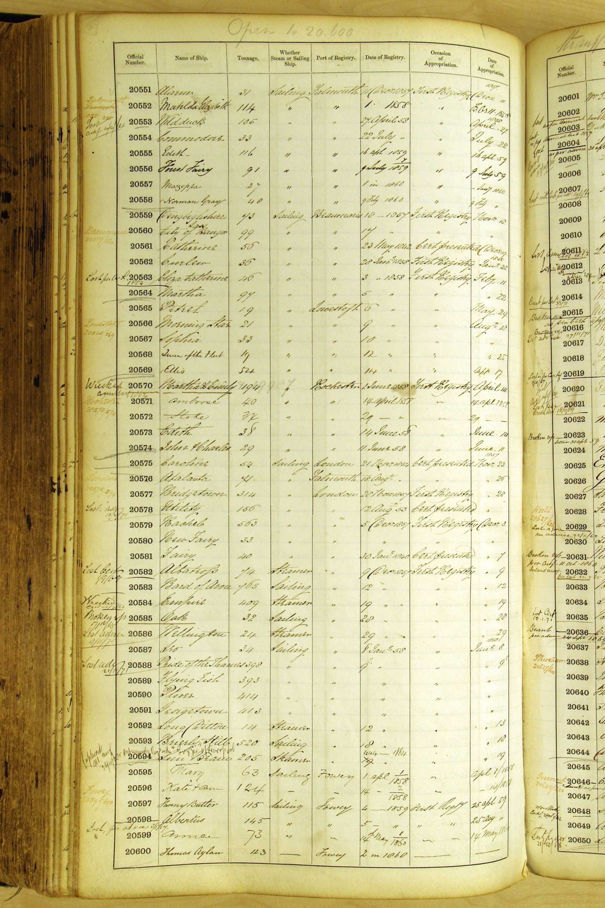 When the system of official numbers began on 16 April 1855, the British Ports of Registry were each allocated batches of official numbers. For official numbers up to 22200 you can see this allocation as a pencil note at the top of the page where the allocation began. A summary of the first allocation is shown here: Initial allocation of official numbers