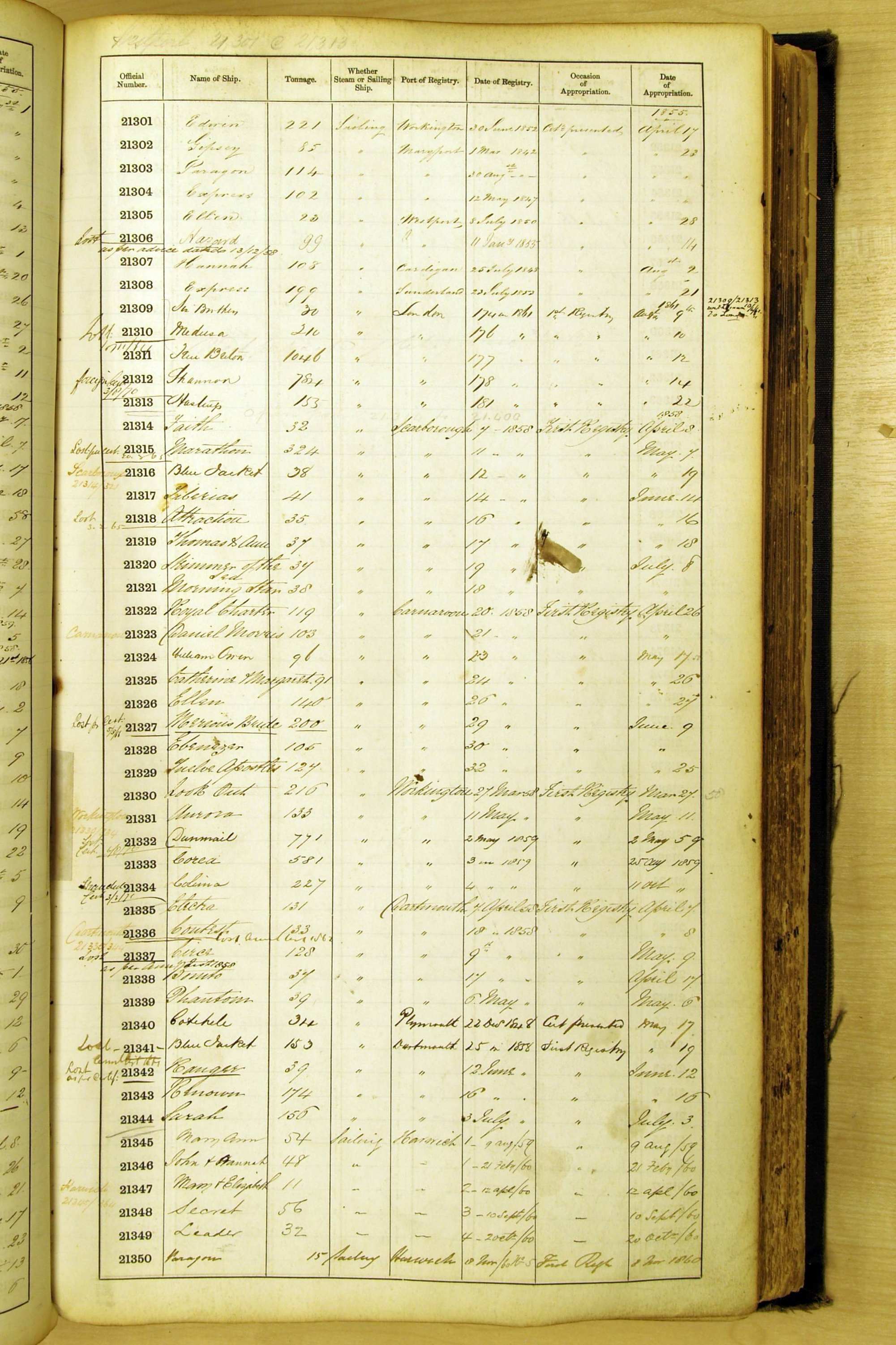When the system of official numbers began on 16 April 1855, the British Ports of Registry were each allocated batches of official numbers. For official numbers up to 22200 you can see this allocation as a pencil note at the top of the page where the allocation began. A summary of the first allocation is shown here: Initial allocation of official numbers