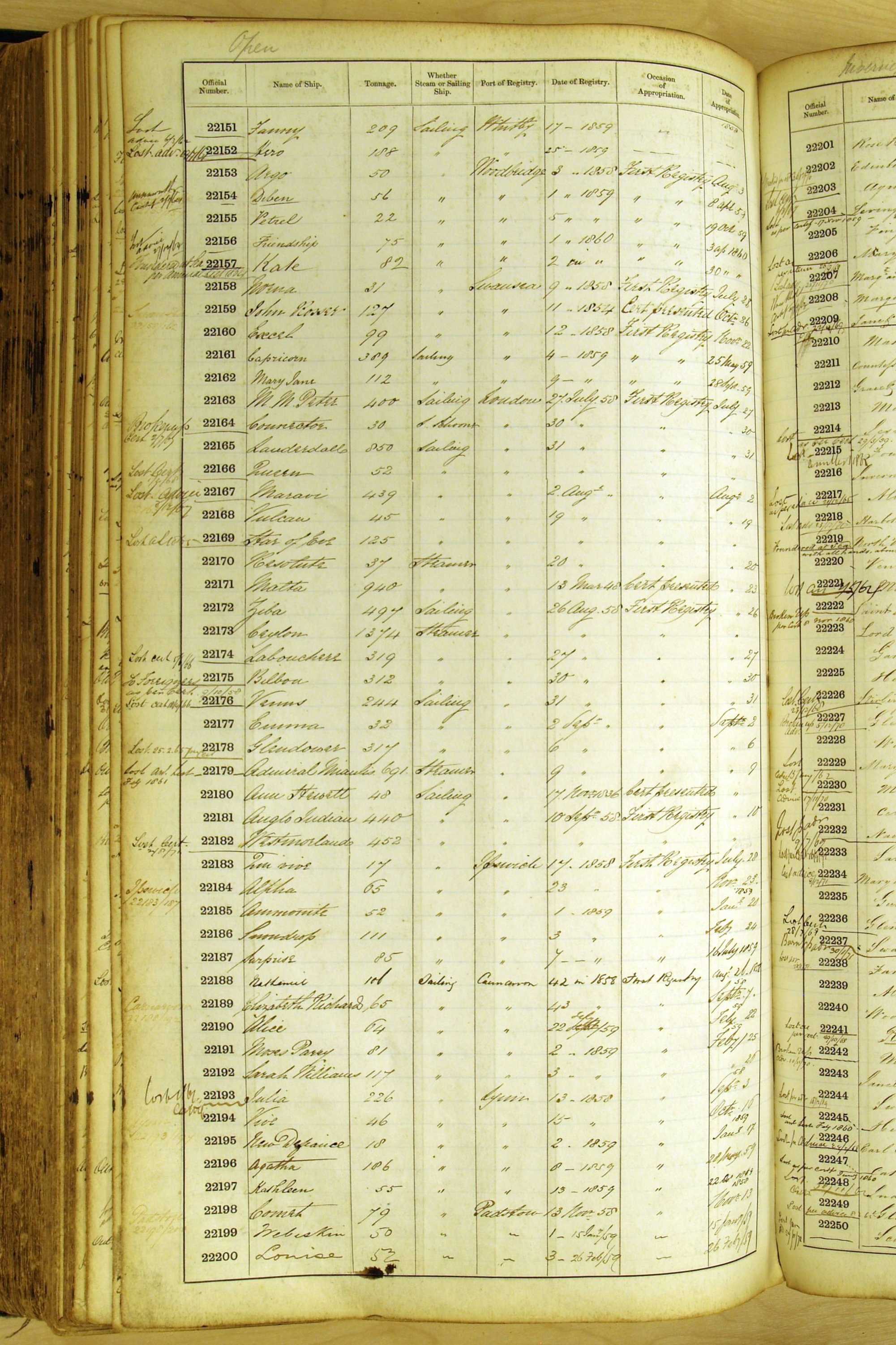 The images were made by CLIP from the original volumes held at the Registry of Shipping and Seamen in Cardiff and we would like to thank the staff for their helpfulness in providing us with access to the volumes.