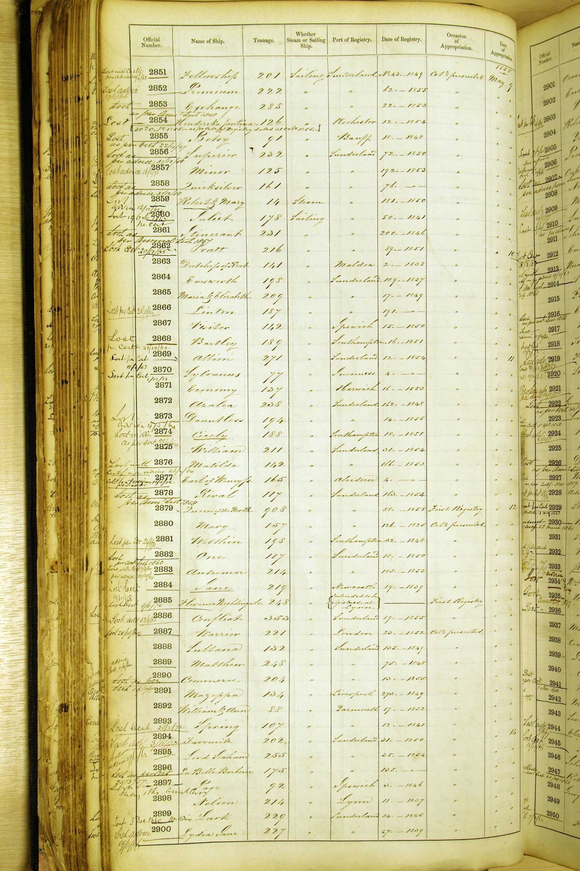 When the system of official numbers began on 16 April 1855, the British Ports of Registry were each allocated batches of official numbers. For official numbers up to 22200 you can see this allocation as a pencil note at the top of the page where the allocation began. A summary of the first allocation is shown here: Initial allocation of official numbers