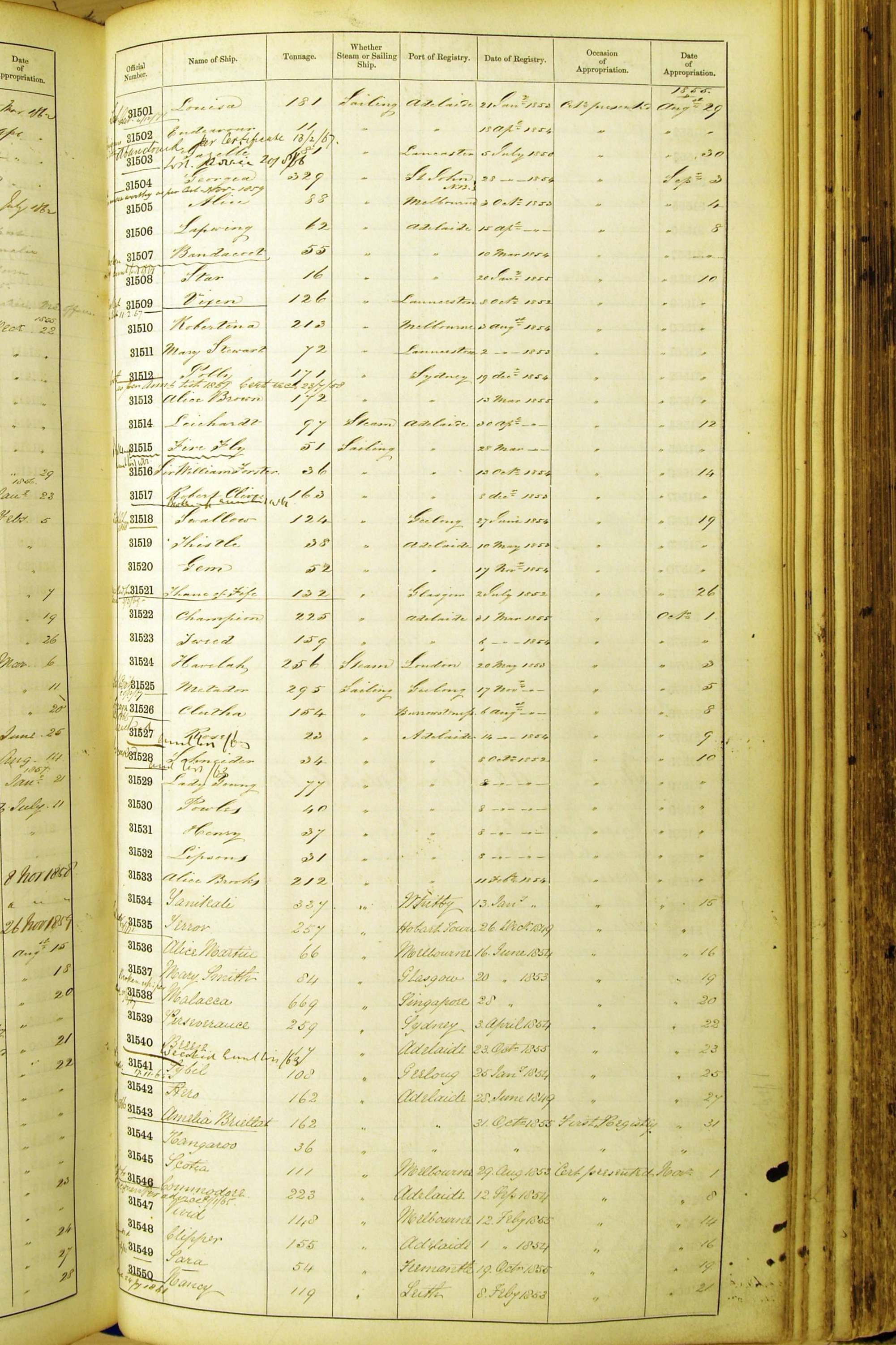 Bear in mind that the ships names in the Appropriation Books are not the definitive name or spelling of the name, even though these are the central records for the whole system. As you can see, the entries are hand-written and derived from hand-written returns made by the various ports, themselves based on the hand-written shipping registers, based on what the port officials thought the person registering the ship was saying or had hand-written down.