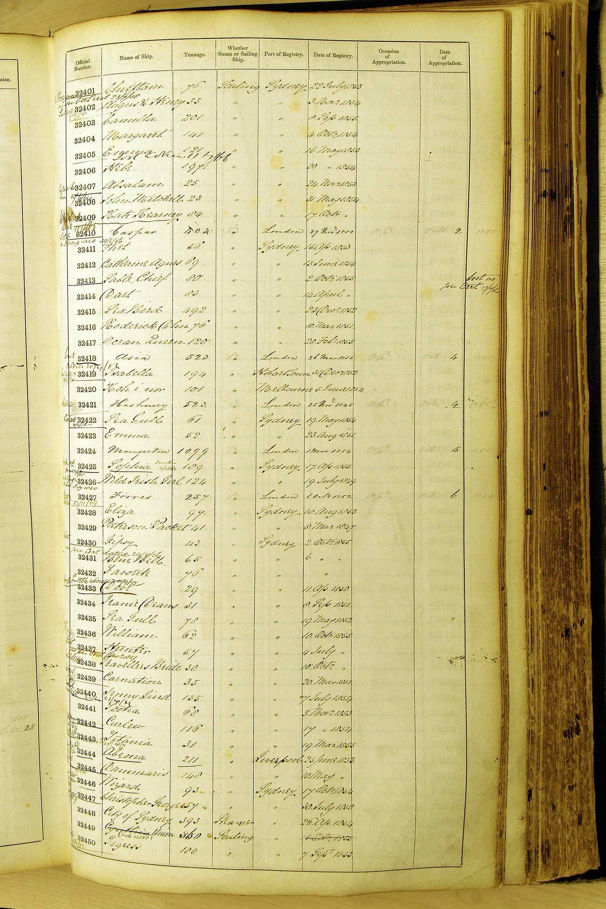 When the system of official numbers began on 16 April 1855, the British Ports of Registry were each allocated batches of official numbers. For official numbers up to 22200 you can see this allocation as a pencil note at the top of the page where the allocation began. A summary of the first allocation is shown here: Initial allocation of official numbers