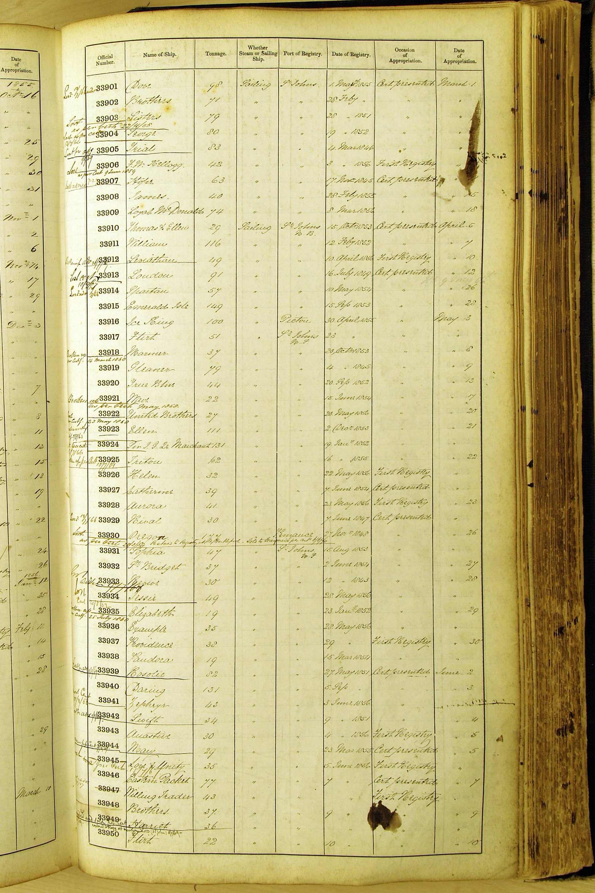 When the system of official numbers began on 16 April 1855, the British Ports of Registry were each allocated batches of official numbers. For official numbers up to 22200 you can see this allocation as a pencil note at the top of the page where the allocation began. A summary of the first allocation is shown here: Initial allocation of official numbers