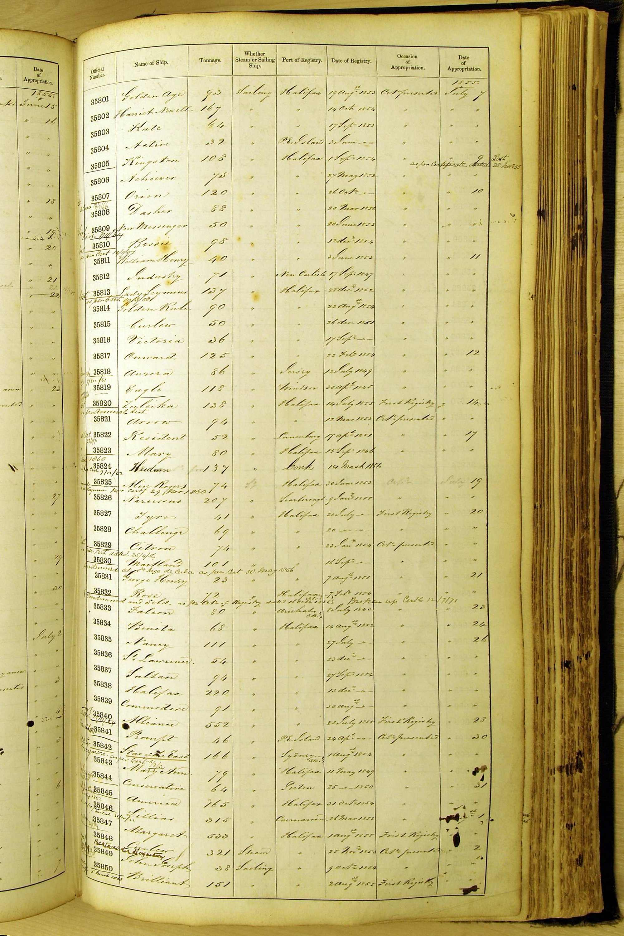Bear in mind that the ships names in the Appropriation Books are not the definitive name or spelling of the name, even though these are the central records for the whole system. As you can see, the entries are hand-written and derived from hand-written returns made by the various ports, themselves based on the hand-written shipping registers, based on what the port officials thought the person registering the ship was saying or had hand-written down.