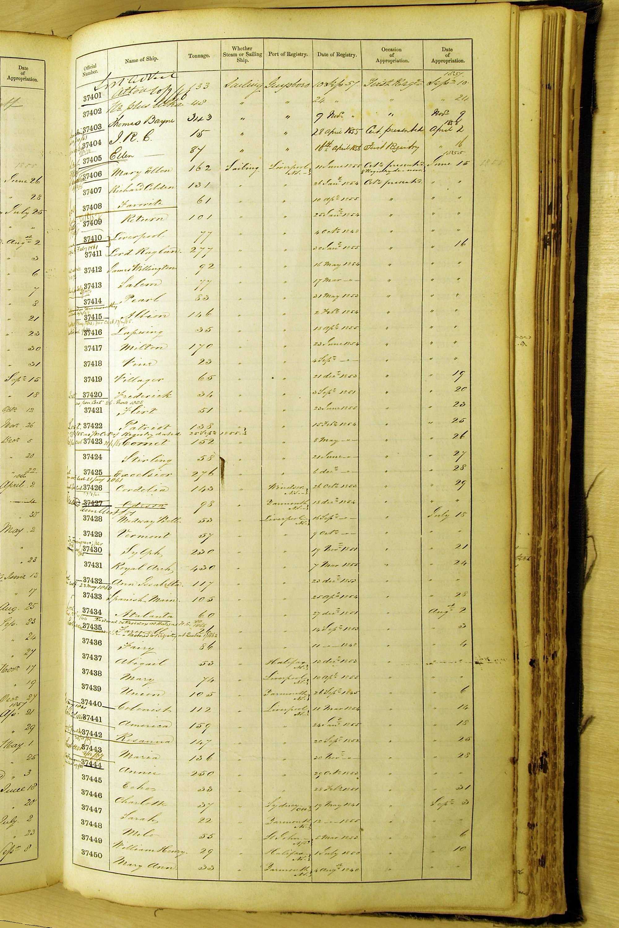 Bear in mind that the ships names in the Appropriation Books are not the definitive name or spelling of the name, even though these are the central records for the whole system. As you can see, the entries are hand-written and derived from hand-written returns made by the various ports, themselves based on the hand-written shipping registers, based on what the port officials thought the person registering the ship was saying or had hand-written down.