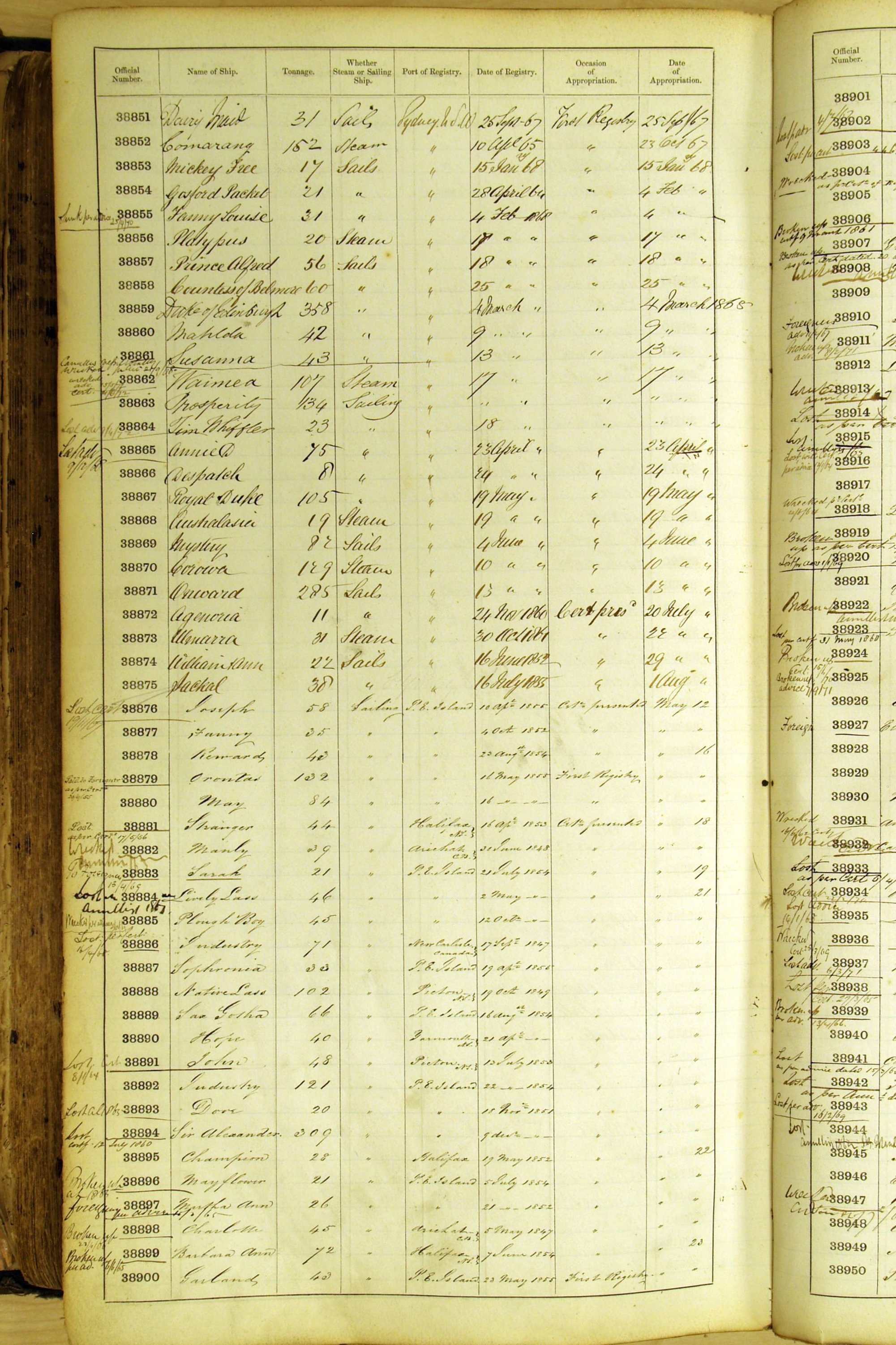 The ship names recorded are those that the ships carried at the time that their official numbers were allocated - changes are sometimes noted, but the best source for changes of name are the shipping registers for the port, or alternatively the Mercantile Navy List.