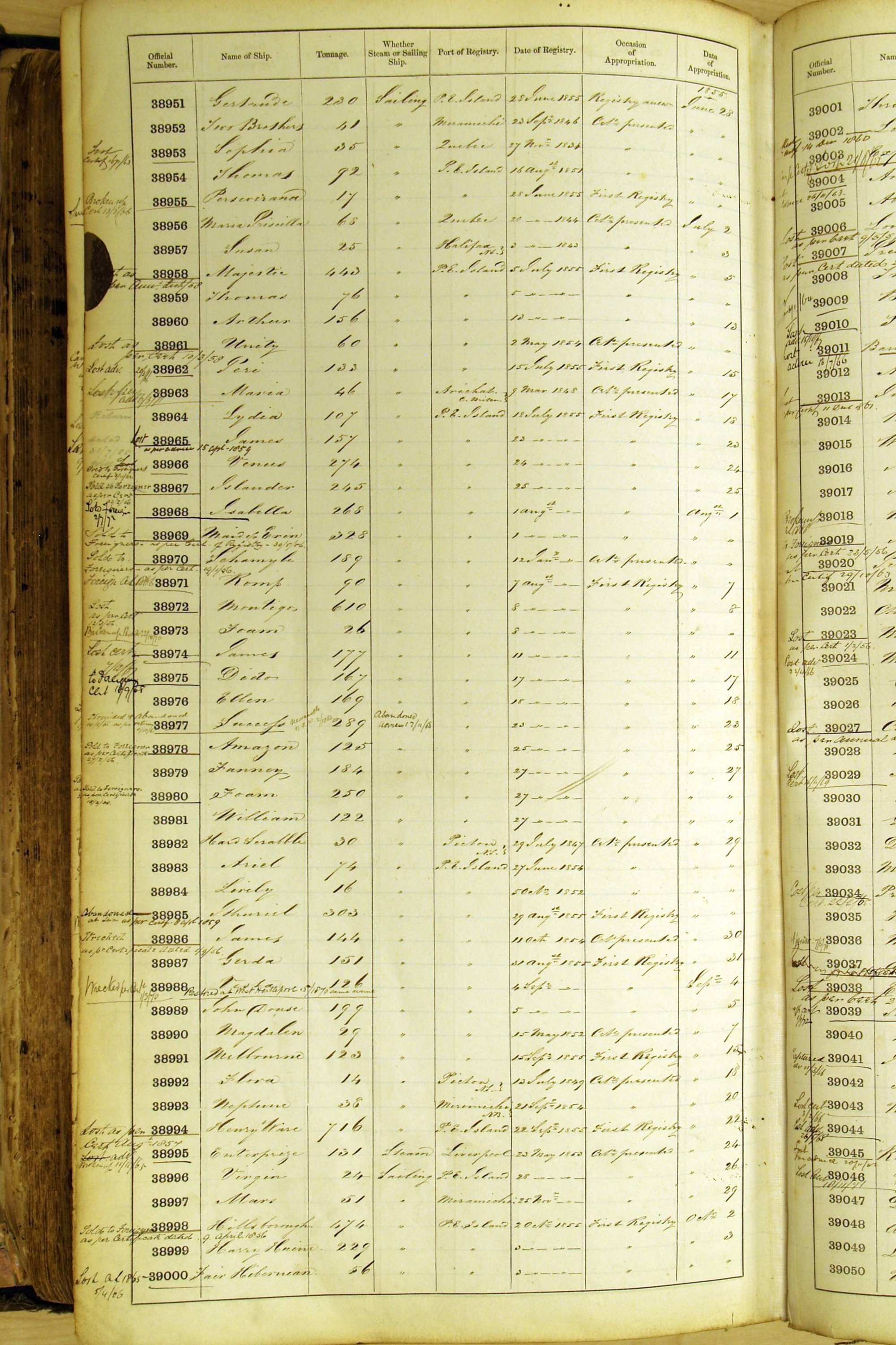 The images were made by CLIP from the original volumes held at the Registry of Shipping and Seamen in Cardiff and we would like to thank the staff for their helpfulness in providing us with access to the volumes.