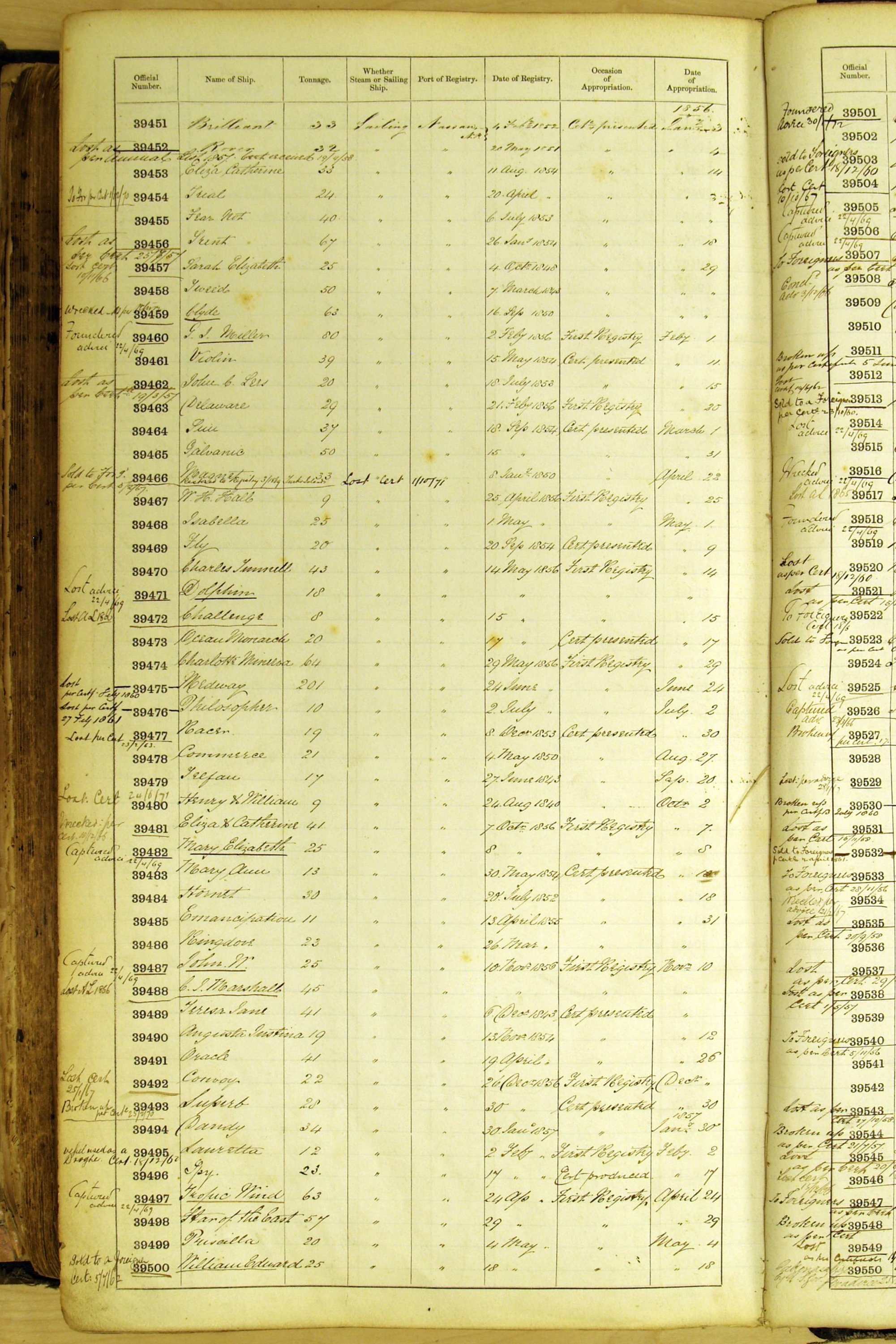 The ship names recorded are those that the ships carried at the time that their official numbers were allocated - changes are sometimes noted, but the best source for changes of name are the shipping registers for the port, or alternatively the Mercantile Navy List.