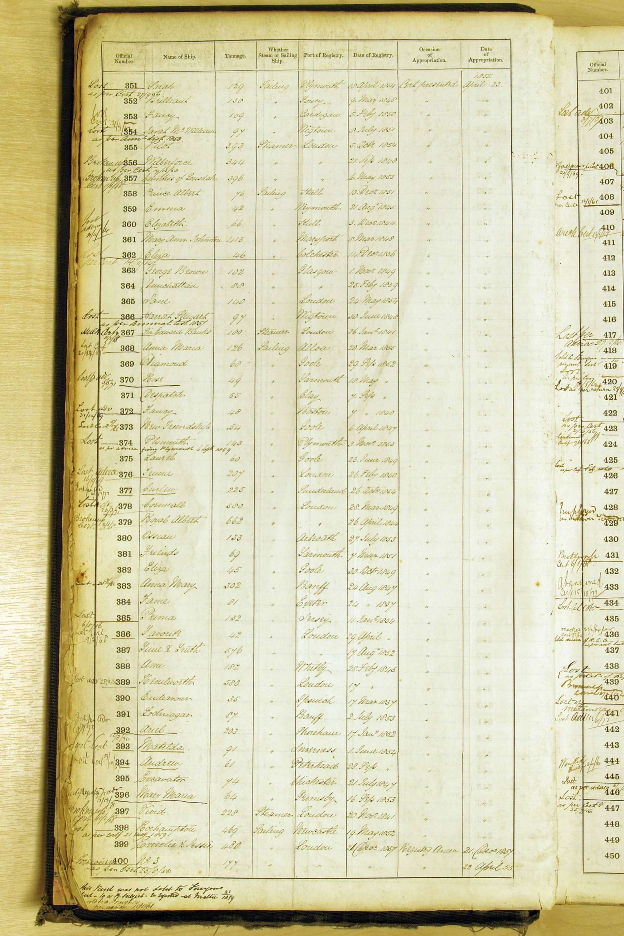 Bear in mind that the ships names in the Appropriation Books are not the definitive name or spelling of the name, even though these are the central records for the whole system. As you can see, the entries are hand-written and derived from hand-written returns made by the various ports, themselves based on the hand-written shipping registers, based on what the port officials thought the person registering the ship was saying or had hand-written down.