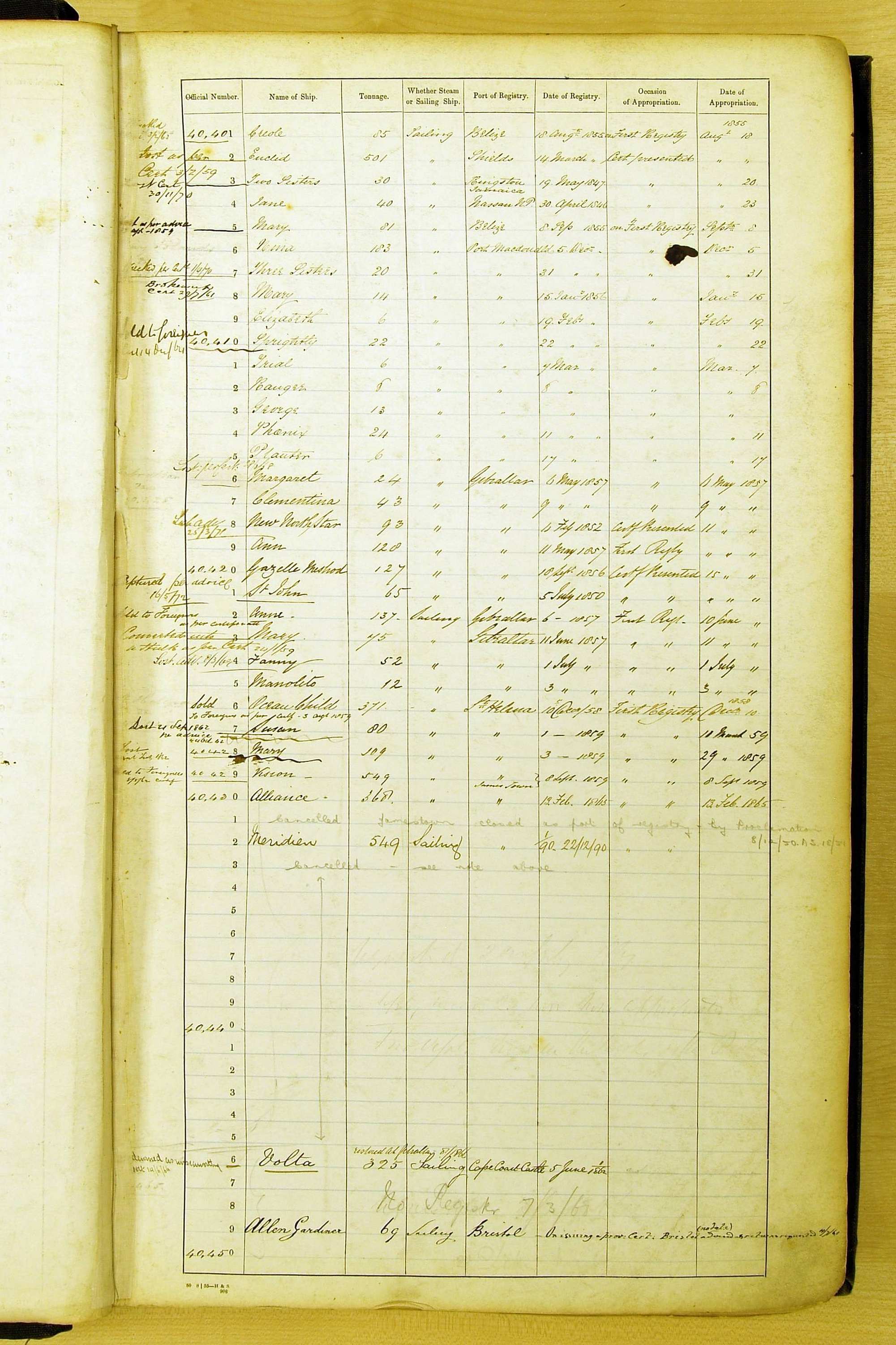 Bear in mind that the ships names in the Appropriation Books are not the definitive name or spelling of the name, even though these are the central records for the whole system. As you can see, the entries are hand-written and derived from hand-written returns made by the various ports, themselves based on the hand-written shipping registers, based on what the port officials thought the person registering the ship was saying or had hand-written down.