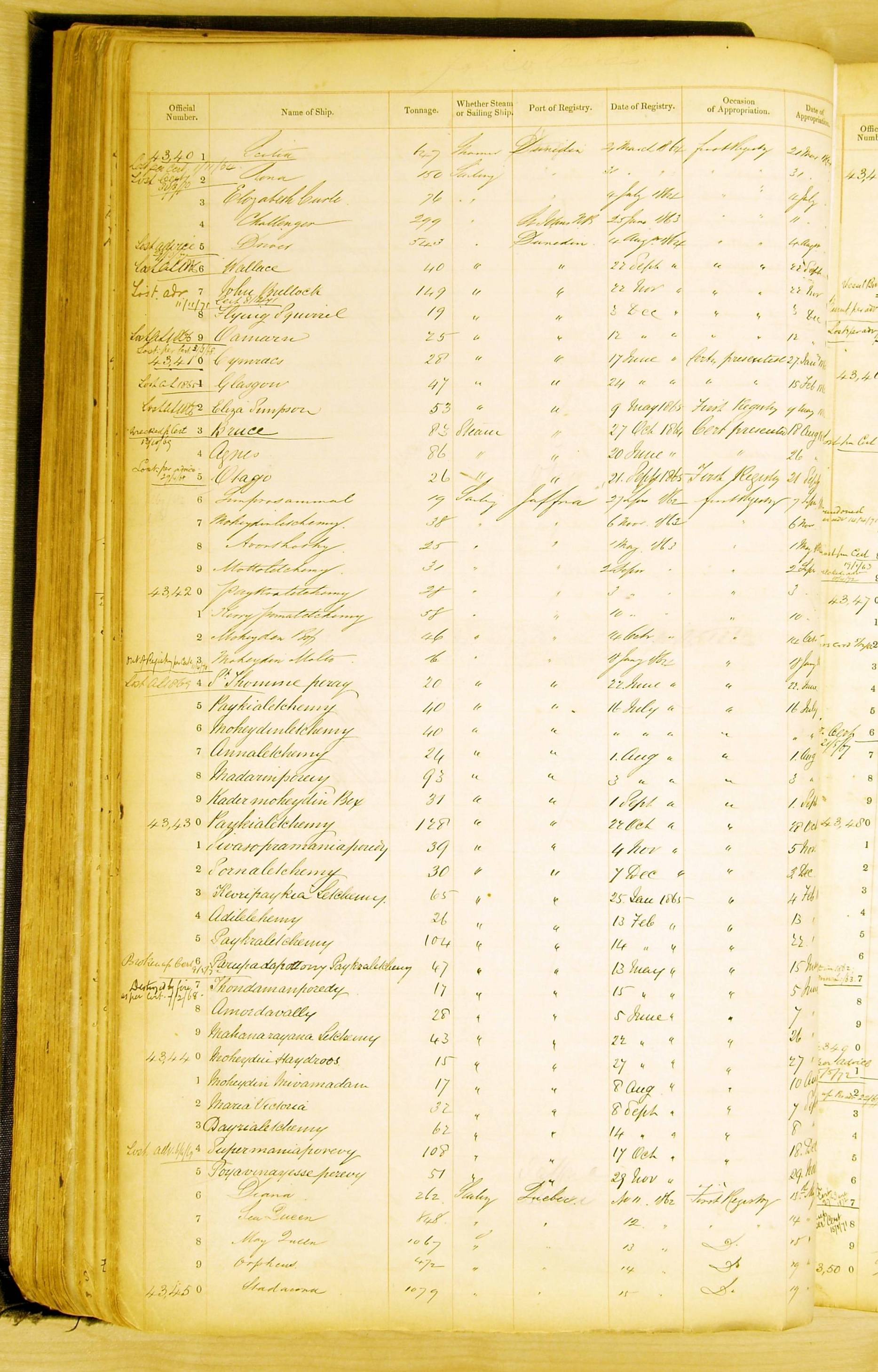 Bear in mind that the ships names in the Appropriation Books are not the definitive name or spelling of the name, even though these are the central records for the whole system. As you can see, the entries are hand-written and derived from hand-written returns made by the various ports, themselves based on the hand-written shipping registers, based on what the port officials thought the person registering the ship was saying or had hand-written down.