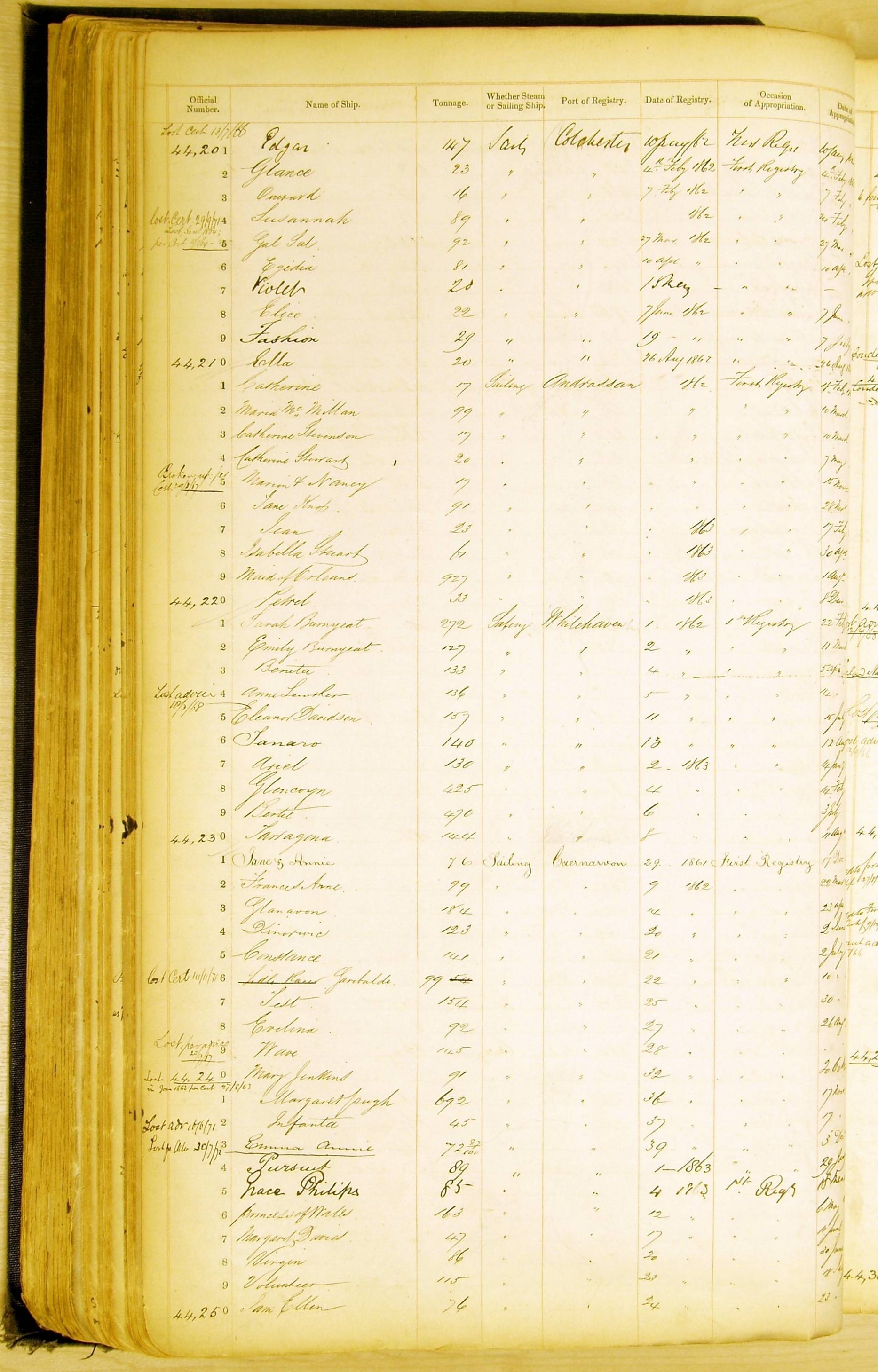 Bear in mind that the ships names in the Appropriation Books are not the definitive name or spelling of the name, even though these are the central records for the whole system. As you can see, the entries are hand-written and derived from hand-written returns made by the various ports, themselves based on the hand-written shipping registers, based on what the port officials thought the person registering the ship was saying or had hand-written down.