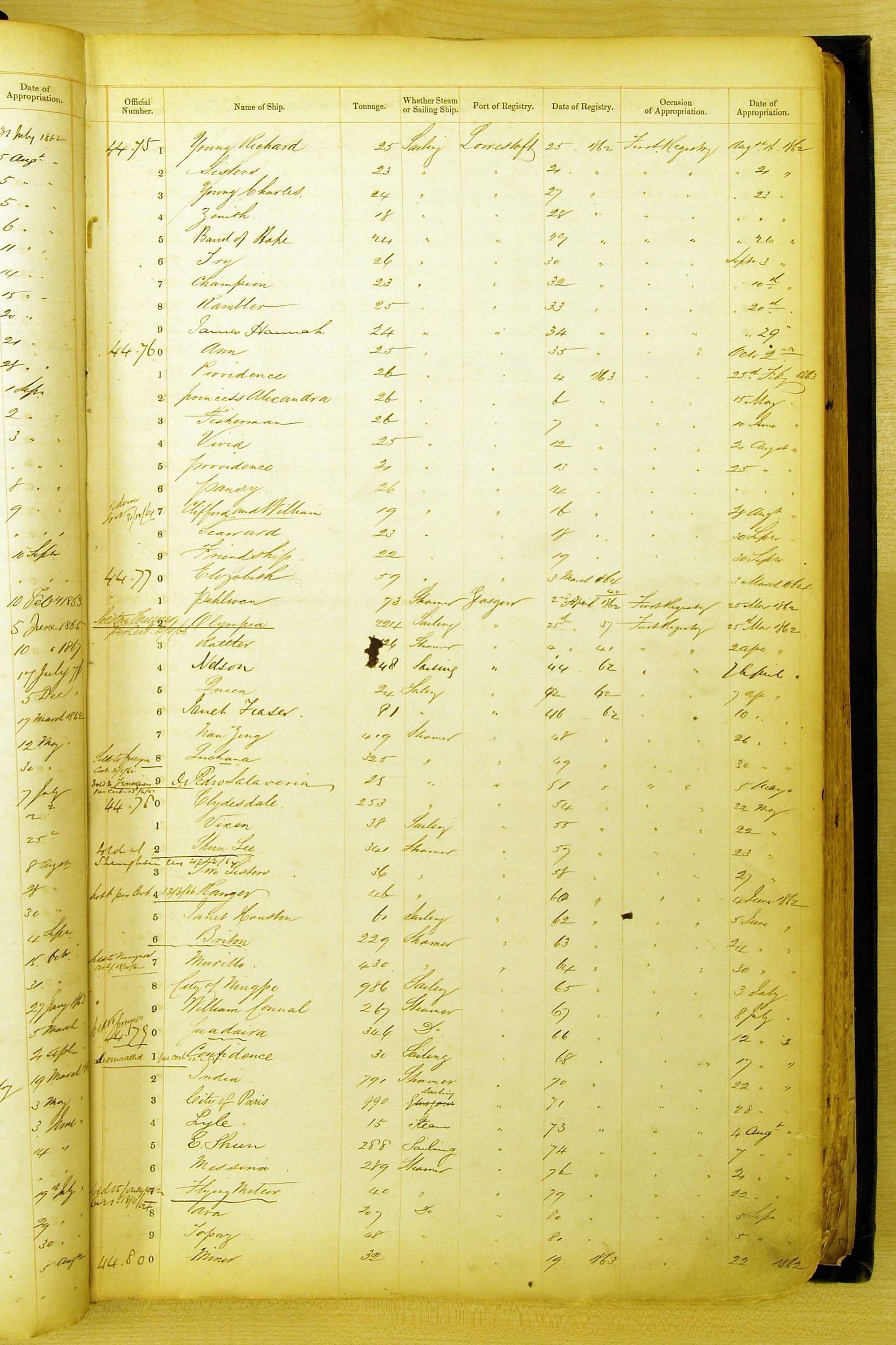 Bear in mind that the ships names in the Appropriation Books are not the definitive name or spelling of the name, even though these are the central records for the whole system. As you can see, the entries are hand-written and derived from hand-written returns made by the various ports, themselves based on the hand-written shipping registers, based on what the port officials thought the person registering the ship was saying or had hand-written down.