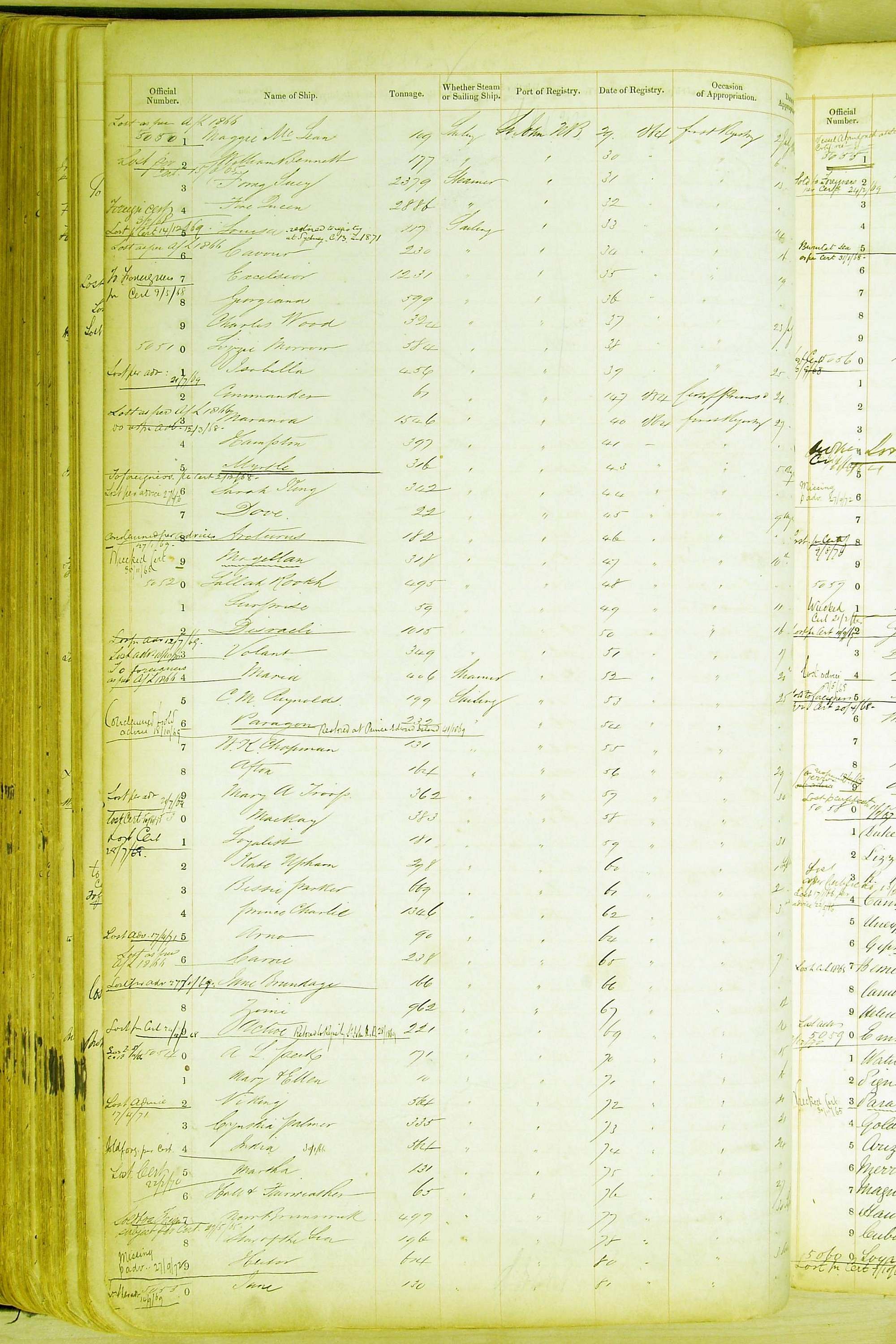Bear in mind that the ships names in the Appropriation Books are not the definitive name or spelling of the name, even though these are the central records for the whole system. As you can see, the entries are hand-written and derived from hand-written returns made by the various ports, themselves based on the hand-written shipping registers, based on what the port officials thought the person registering the ship was saying or had hand-written down.