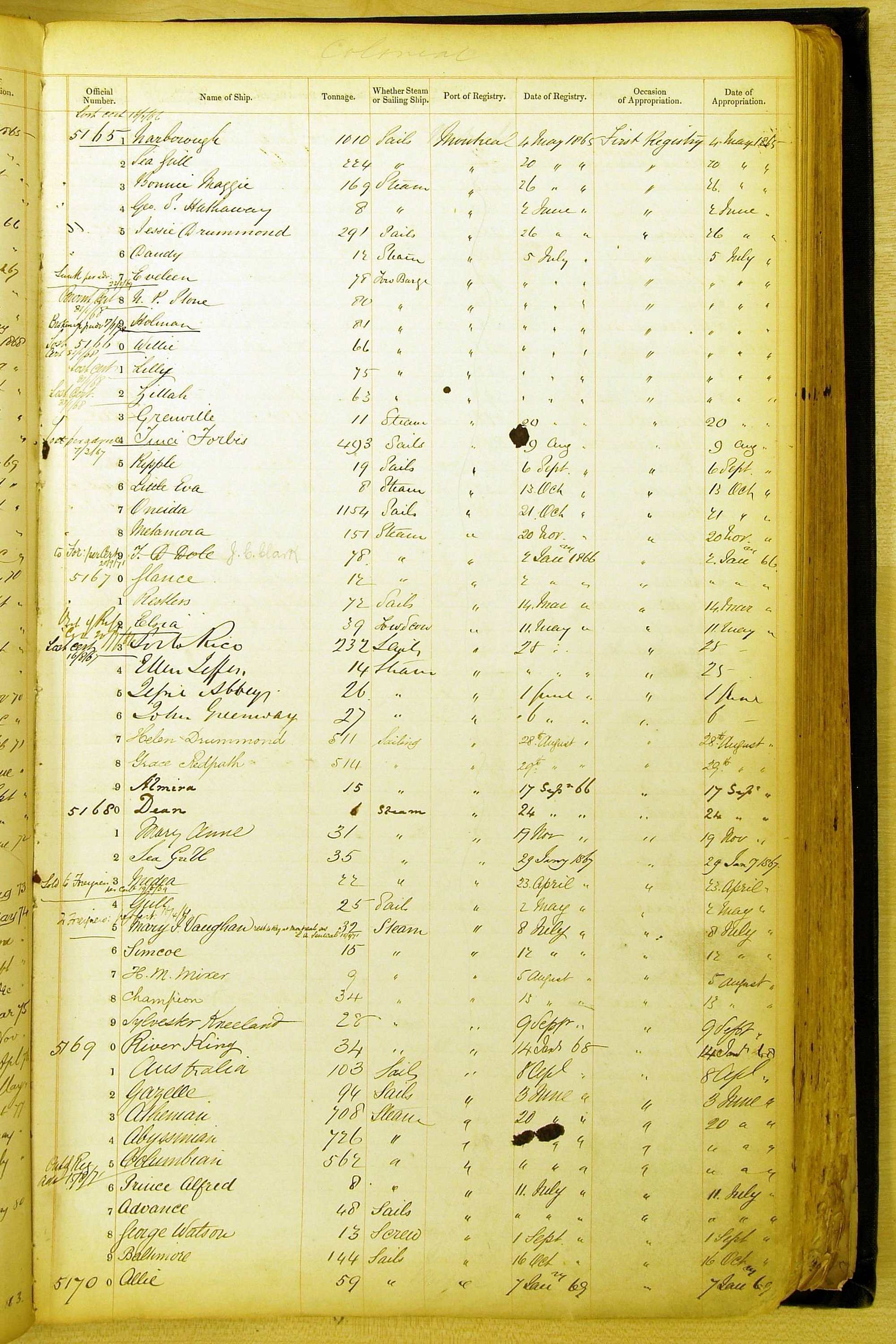 The ship names recorded are those that the ships carried at the time that their official numbers were allocated - changes are sometimes noted, but the best source for changes of name are the shipping registers for the port, or alternatively the Mercantile Navy List.