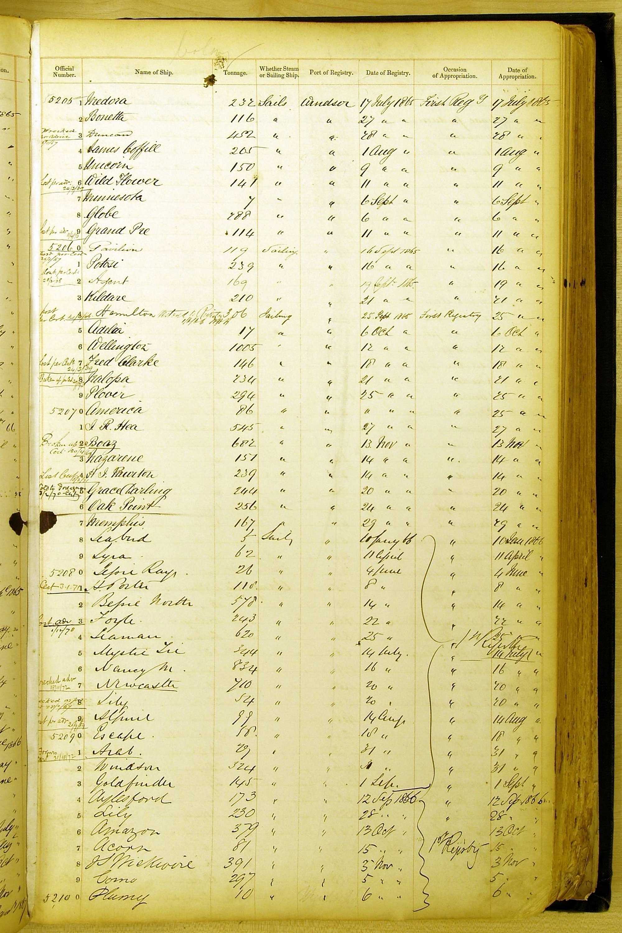 Bear in mind that the ships names in the Appropriation Books are not the definitive name or spelling of the name, even though these are the central records for the whole system. As you can see, the entries are hand-written and derived from hand-written returns made by the various ports, themselves based on the hand-written shipping registers, based on what the port officials thought the person registering the ship was saying or had hand-written down.