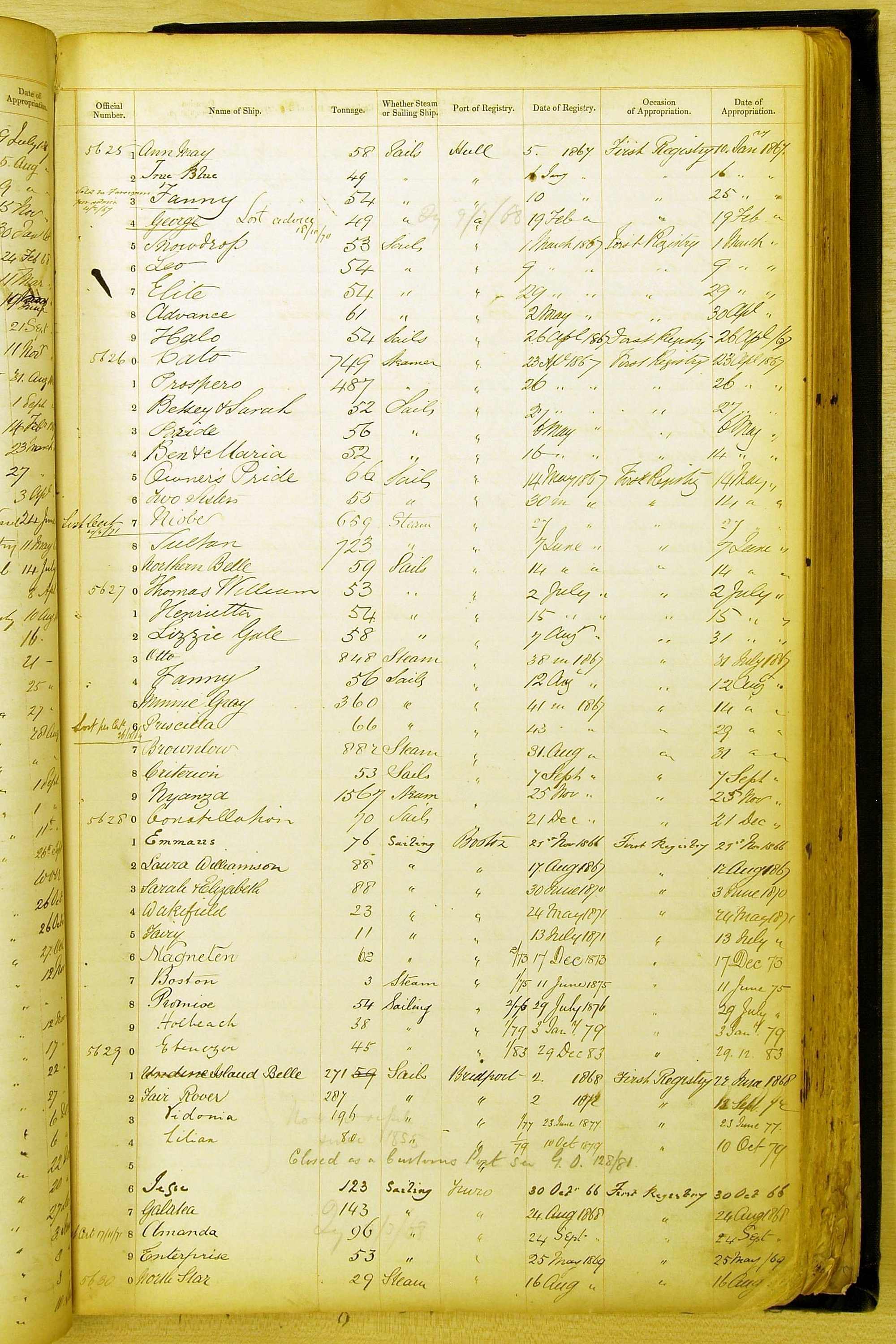 Bear in mind that the ships names in the Appropriation Books are not the definitive name or spelling of the name, even though these are the central records for the whole system. As you can see, the entries are hand-written and derived from hand-written returns made by the various ports, themselves based on the hand-written shipping registers, based on what the port officials thought the person registering the ship was saying or had hand-written down.