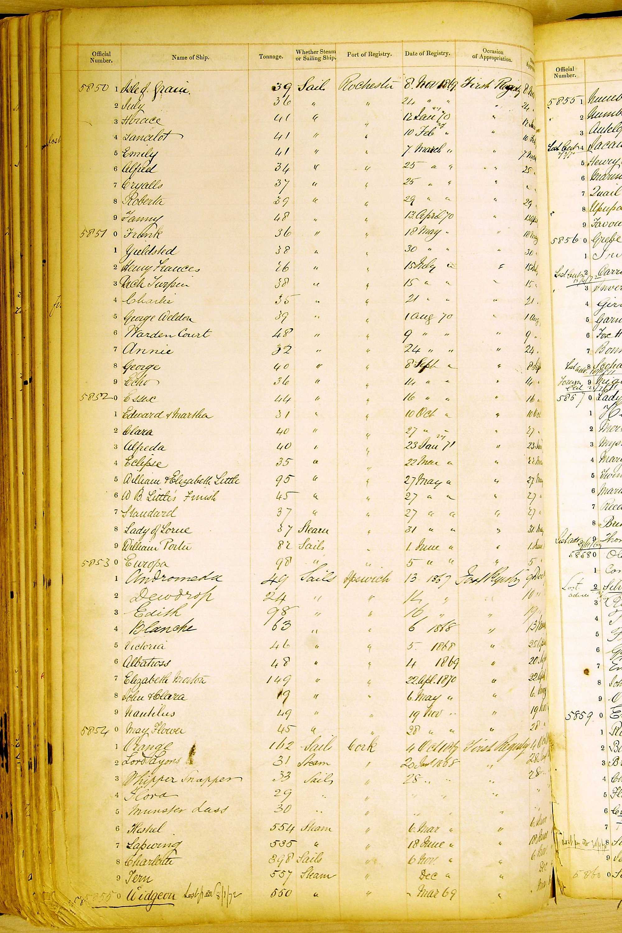 The ship names recorded are those that the ships carried at the time that their official numbers were allocated - changes are sometimes noted, but the best source for changes of name are the shipping registers for the port, or alternatively the Mercantile Navy List.