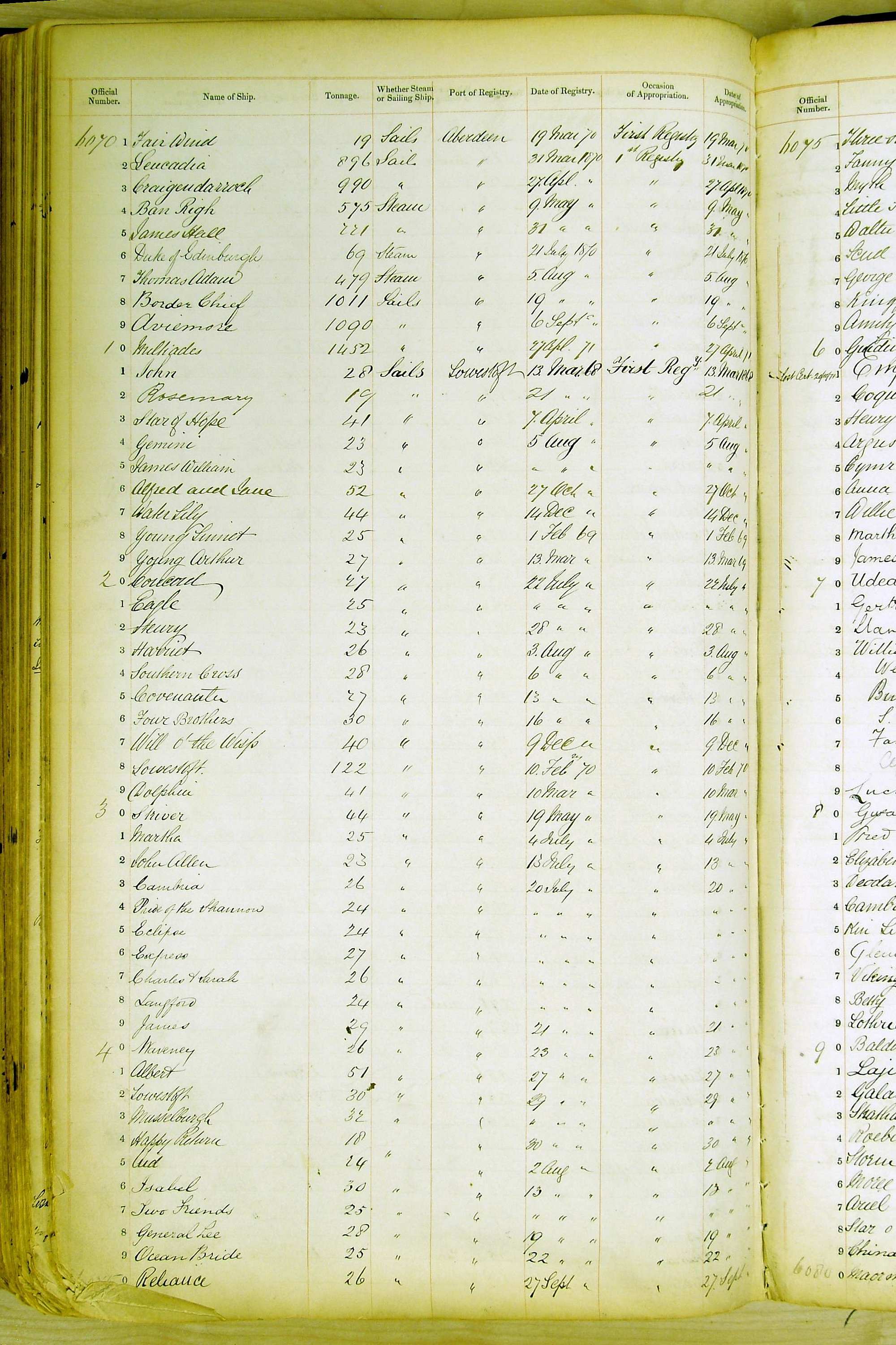 Bear in mind that the ships names in the Appropriation Books are not the definitive name or spelling of the name, even though these are the central records for the whole system. As you can see, the entries are hand-written and derived from hand-written returns made by the various ports, themselves based on the hand-written shipping registers, based on what the port officials thought the person registering the ship was saying or had hand-written down.
