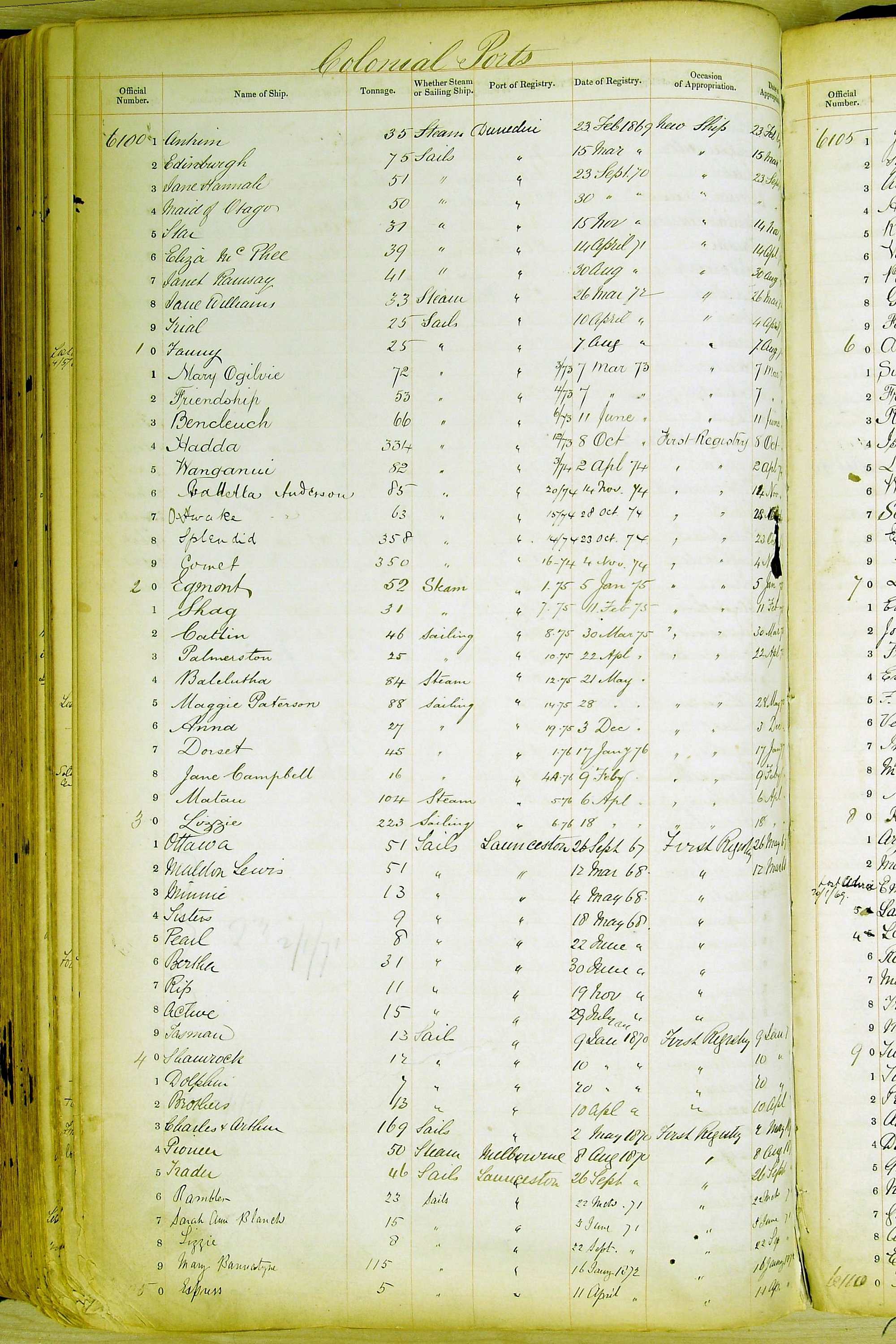 The ship names recorded are those that the ships carried at the time that their official numbers were allocated - changes are sometimes noted, but the best source for changes of name are the shipping registers for the port, or alternatively the Mercantile Navy List.