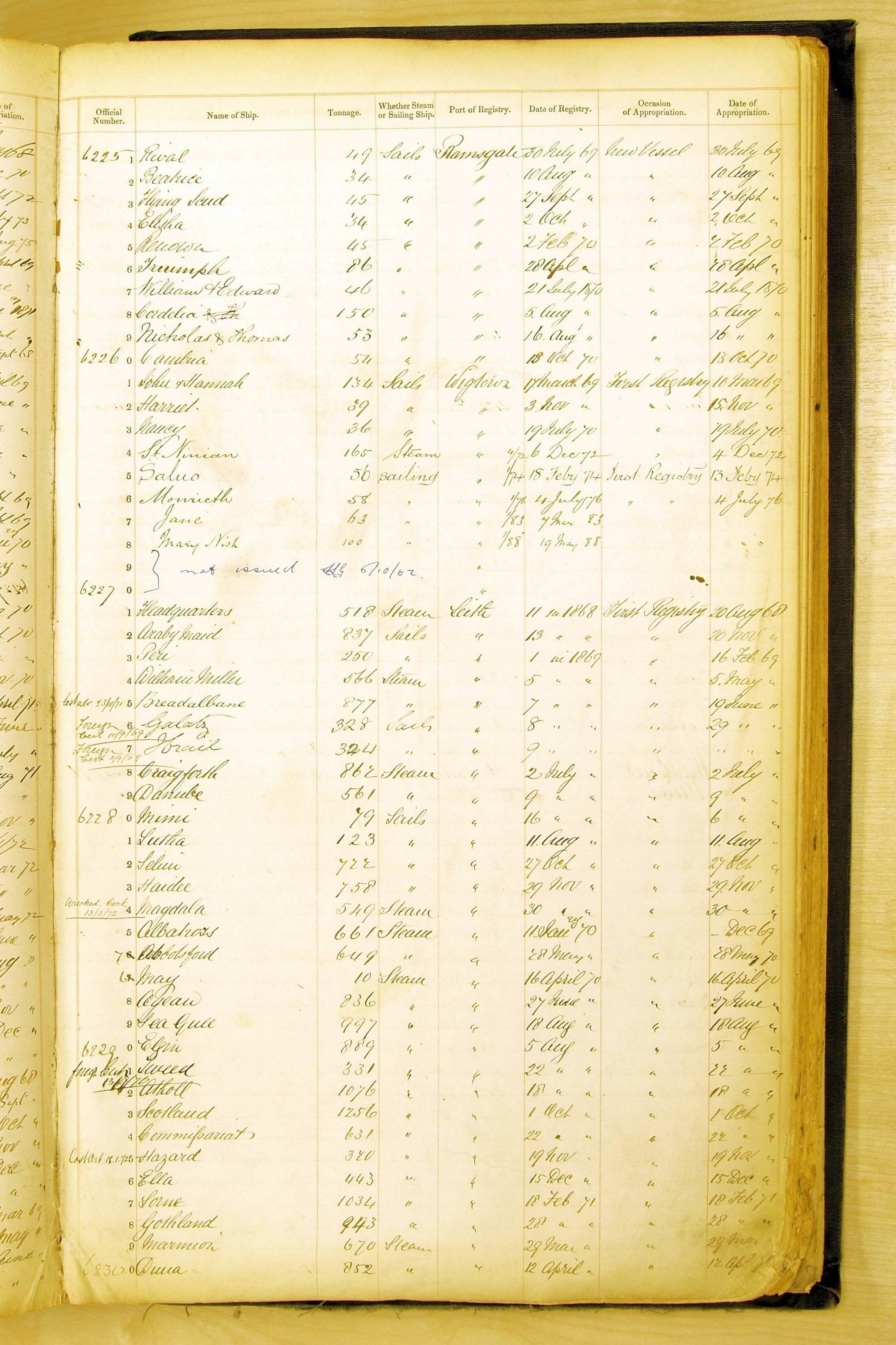 The ship names recorded are those that the ships carried at the time that their official numbers were allocated - changes are sometimes noted, but the best source for changes of name are the shipping registers for the port, or alternatively the Mercantile Navy List.