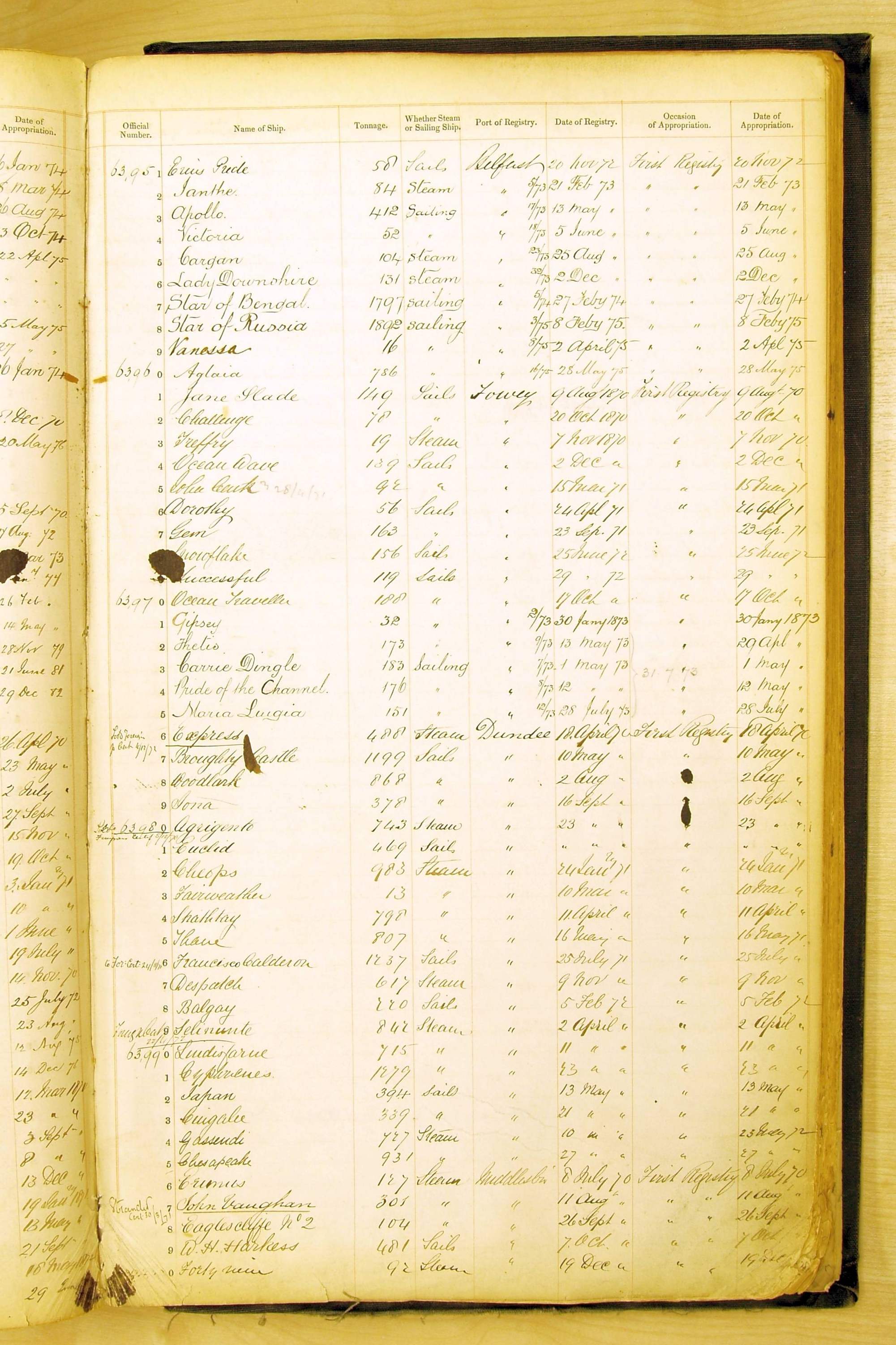 Bear in mind that the ships names in the Appropriation Books are not the definitive name or spelling of the name, even though these are the central records for the whole system. As you can see, the entries are hand-written and derived from hand-written returns made by the various ports, themselves based on the hand-written shipping registers, based on what the port officials thought the person registering the ship was saying or had hand-written down.