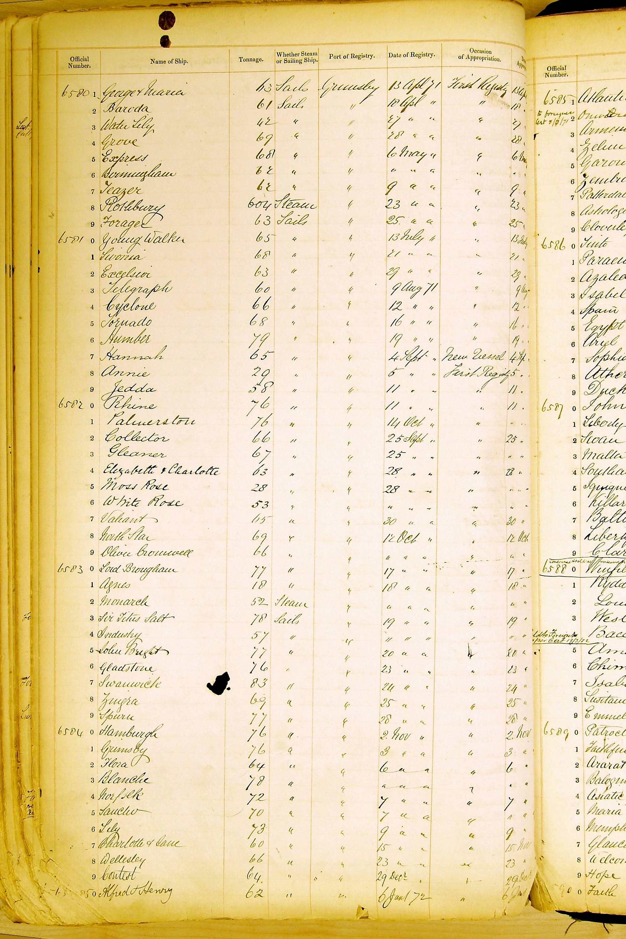 The ship names recorded are those that the ships carried at the time that their official numbers were allocated - changes are sometimes noted, but the best source for changes of name are the shipping registers for the port, or alternatively the Mercantile Navy List.