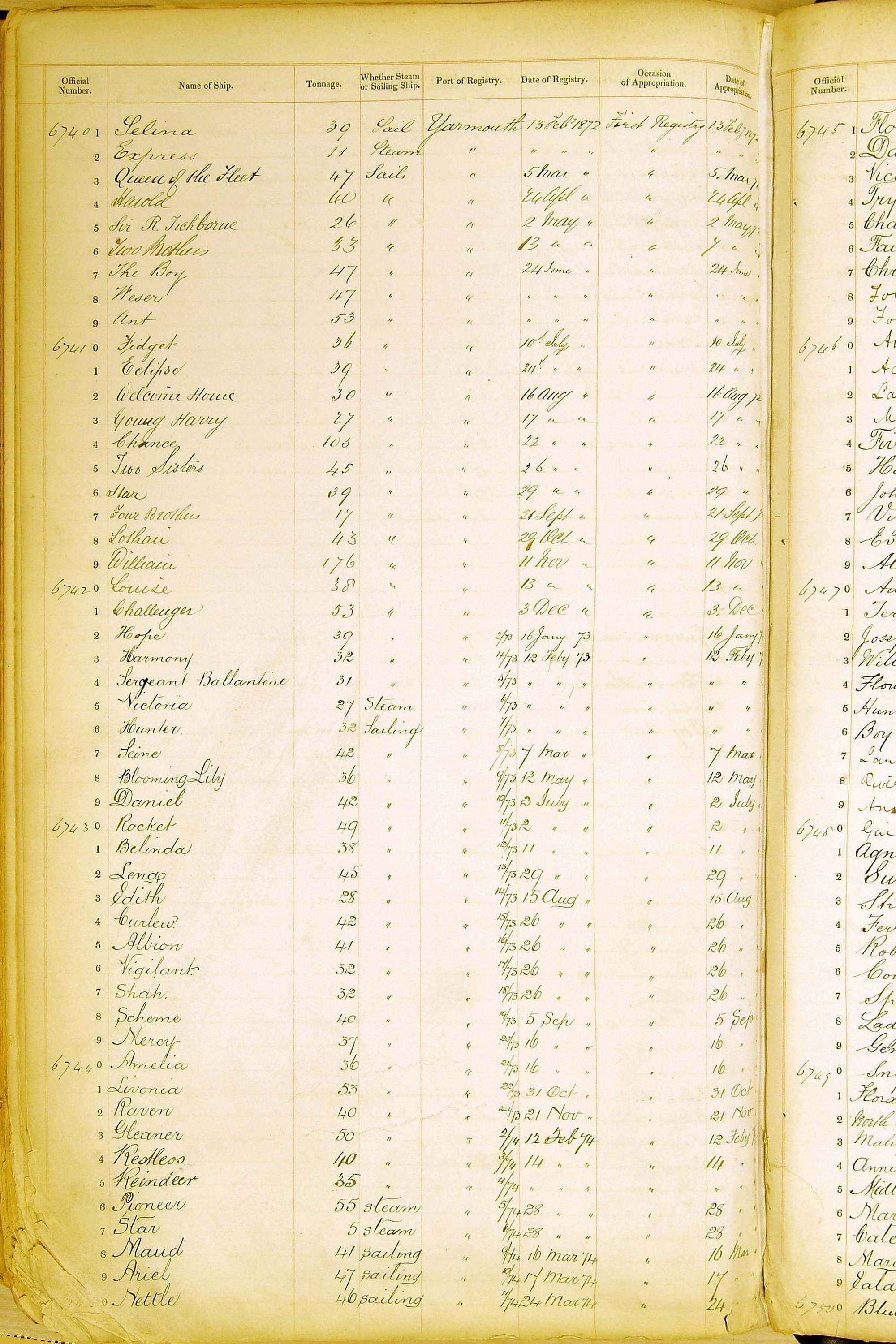 The ship names recorded are those that the ships carried at the time that their official numbers were allocated - changes are sometimes noted, but the best source for changes of name are the shipping registers for the port, or alternatively the Mercantile Navy List.