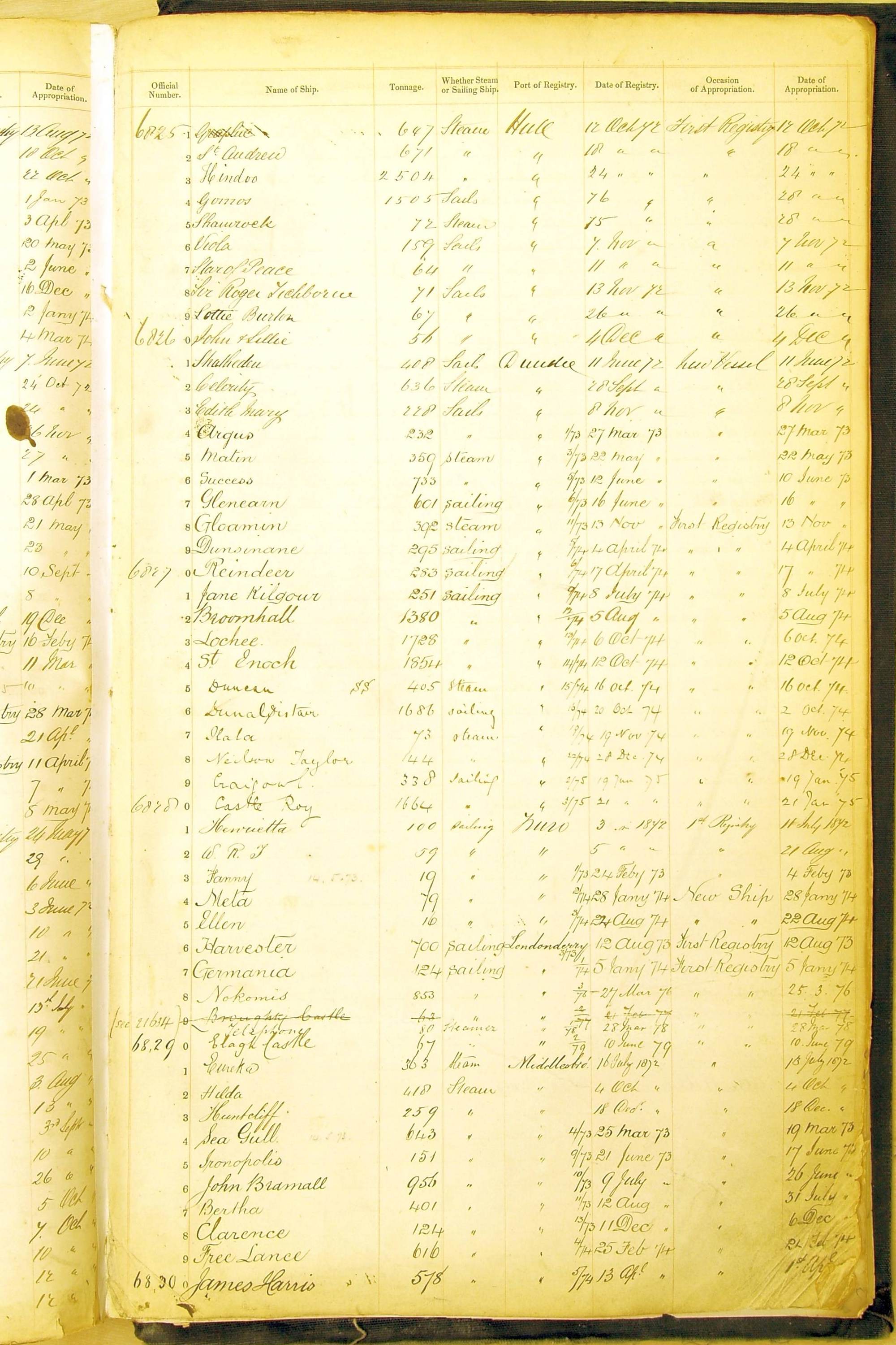 The ship names recorded are those that the ships carried at the time that their official numbers were allocated - changes are sometimes noted, but the best source for changes of name are the shipping registers for the port, or alternatively the Mercantile Navy List.