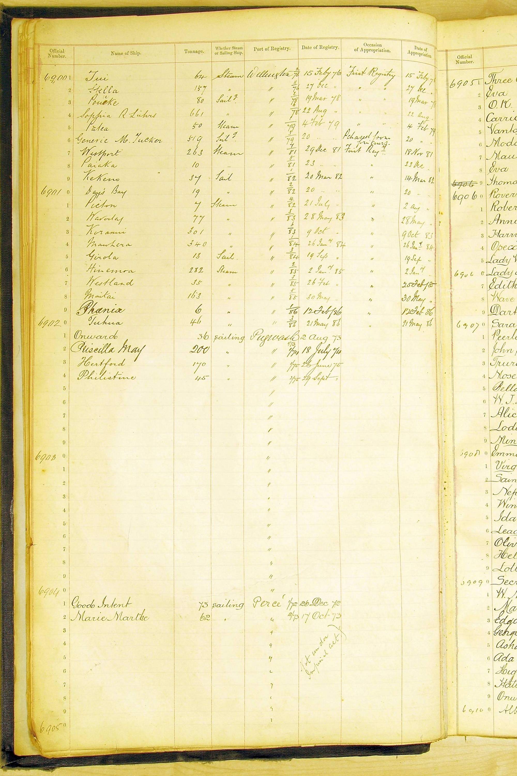 The images were made by CLIP from the original volumes held at the Registry of Shipping and Seamen in Cardiff and we would like to thank the staff for their helpfulness in providing us with access to the volumes.
