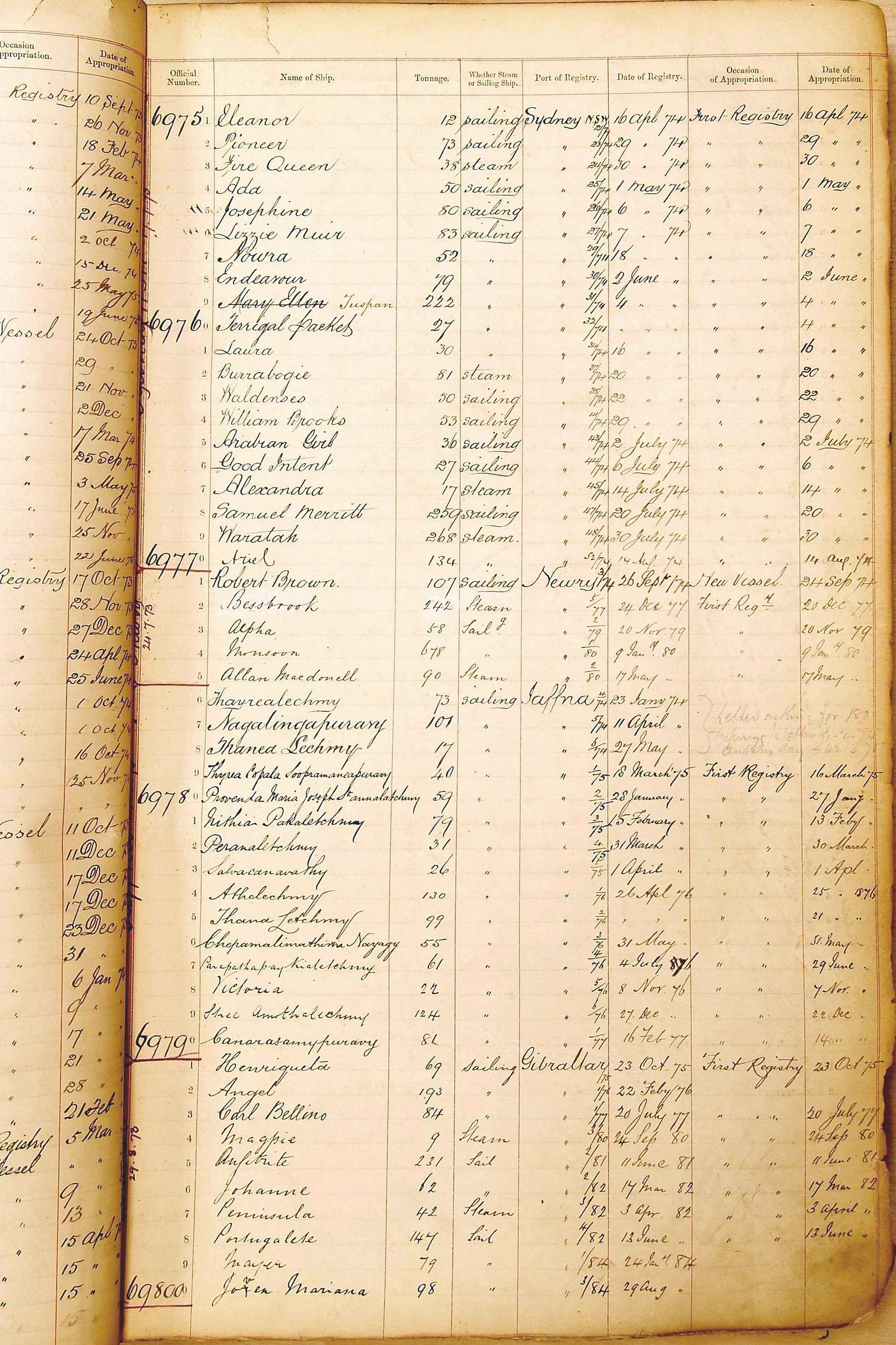Bear in mind that the ships names in the Appropriation Books are not the definitive name or spelling of the name, even though these are the central records for the whole system. As you can see, the entries are hand-written and derived from hand-written returns made by the various ports, themselves based on the hand-written shipping registers, based on what the port officials thought the person registering the ship was saying or had hand-written down.