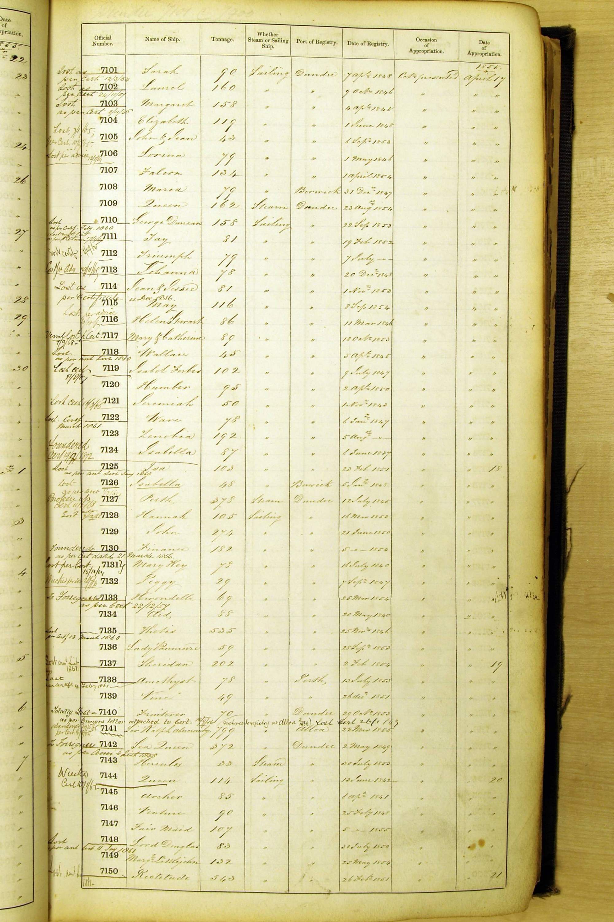 Bear in mind that the ships names in the Appropriation Books are not the definitive name or spelling of the name, even though these are the central records for the whole system. As you can see, the entries are hand-written and derived from hand-written returns made by the various ports, themselves based on the hand-written shipping registers, based on what the port officials thought the person registering the ship was saying or had hand-written down.