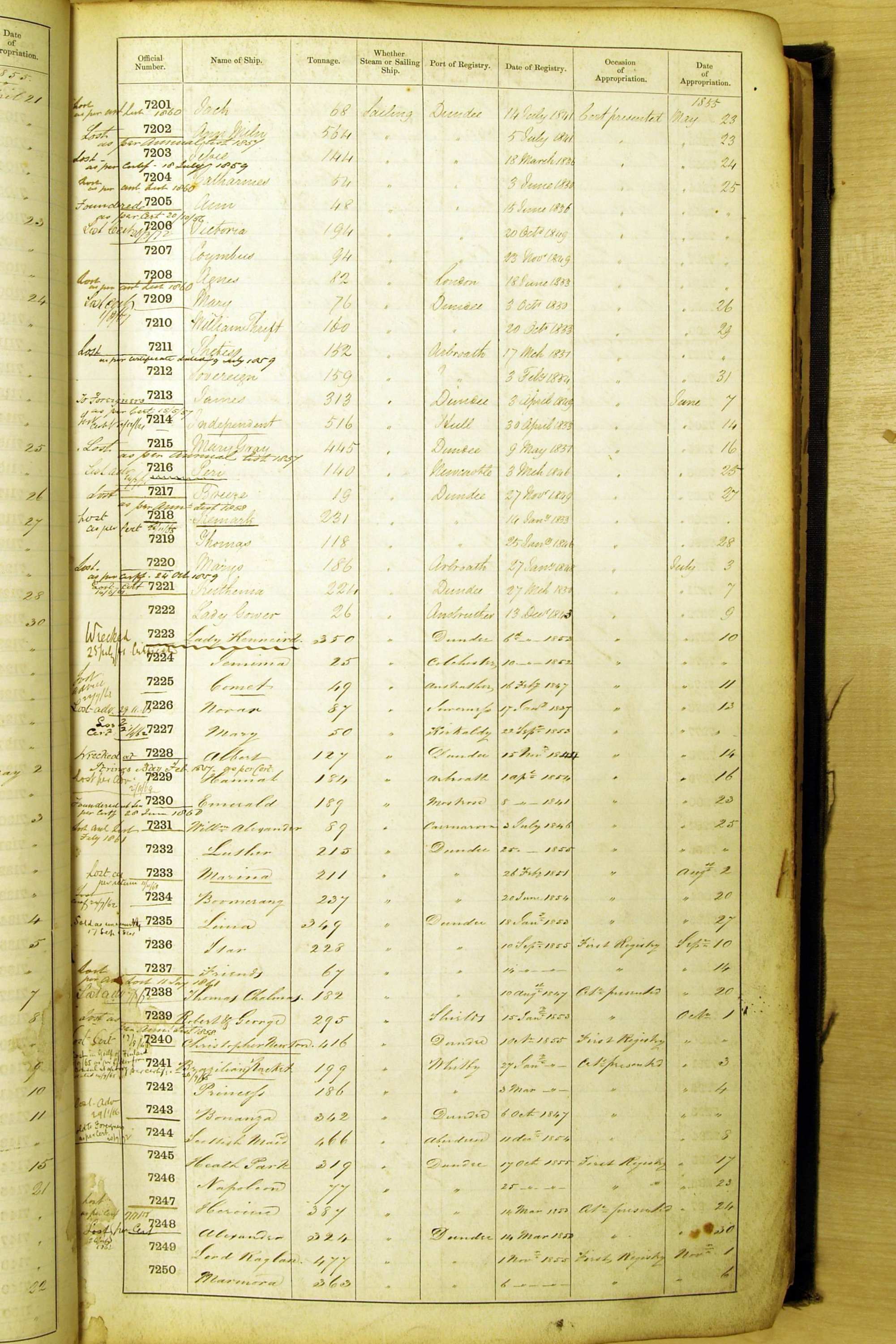 Bear in mind that the ships names in the Appropriation Books are not the definitive name or spelling of the name, even though these are the central records for the whole system. As you can see, the entries are hand-written and derived from hand-written returns made by the various ports, themselves based on the hand-written shipping registers, based on what the port officials thought the person registering the ship was saying or had hand-written down.
