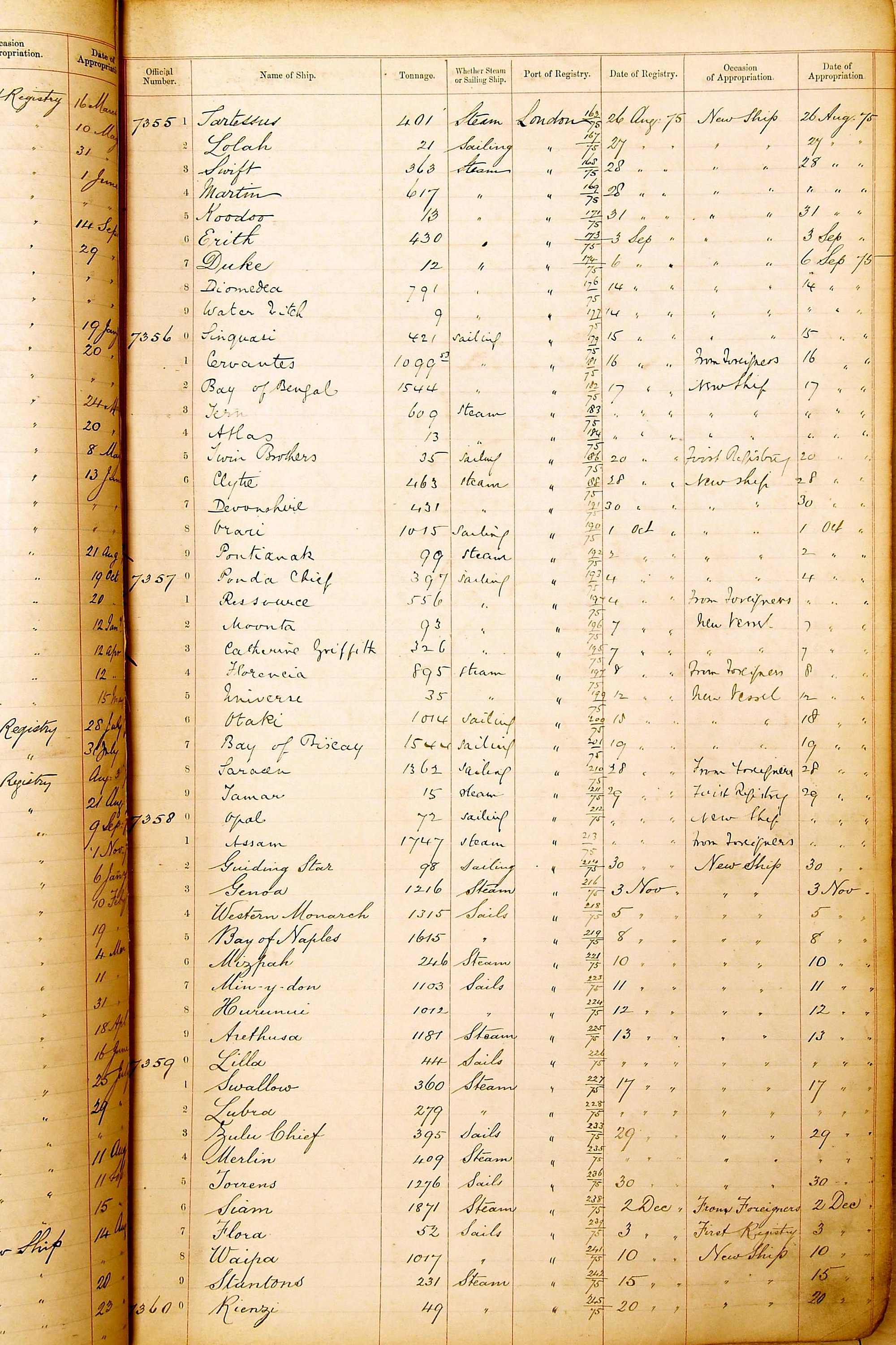 The ship names recorded are those that the ships carried at the time that their official numbers were allocated - changes are sometimes noted, but the best source for changes of name are the shipping registers for the port, or alternatively the Mercantile Navy List.