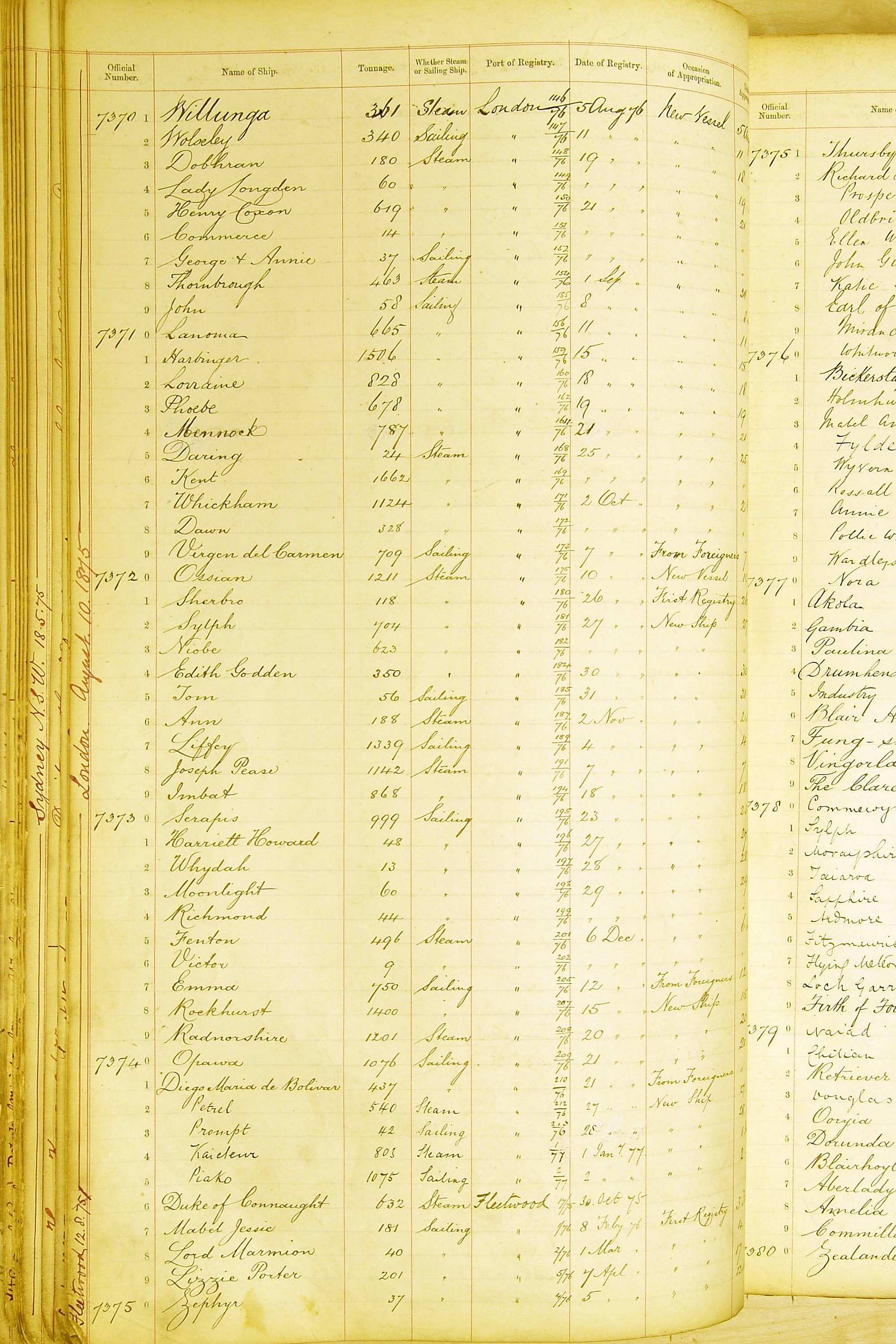 When the system of official numbers began on 16 April 1855, the British Ports of Registry were each allocated batches of official numbers. For official numbers up to 22200 you can see this allocation as a pencil note at the top of the page where the allocation began. A summary of the first allocation is shown here: Initial allocation of official numbers