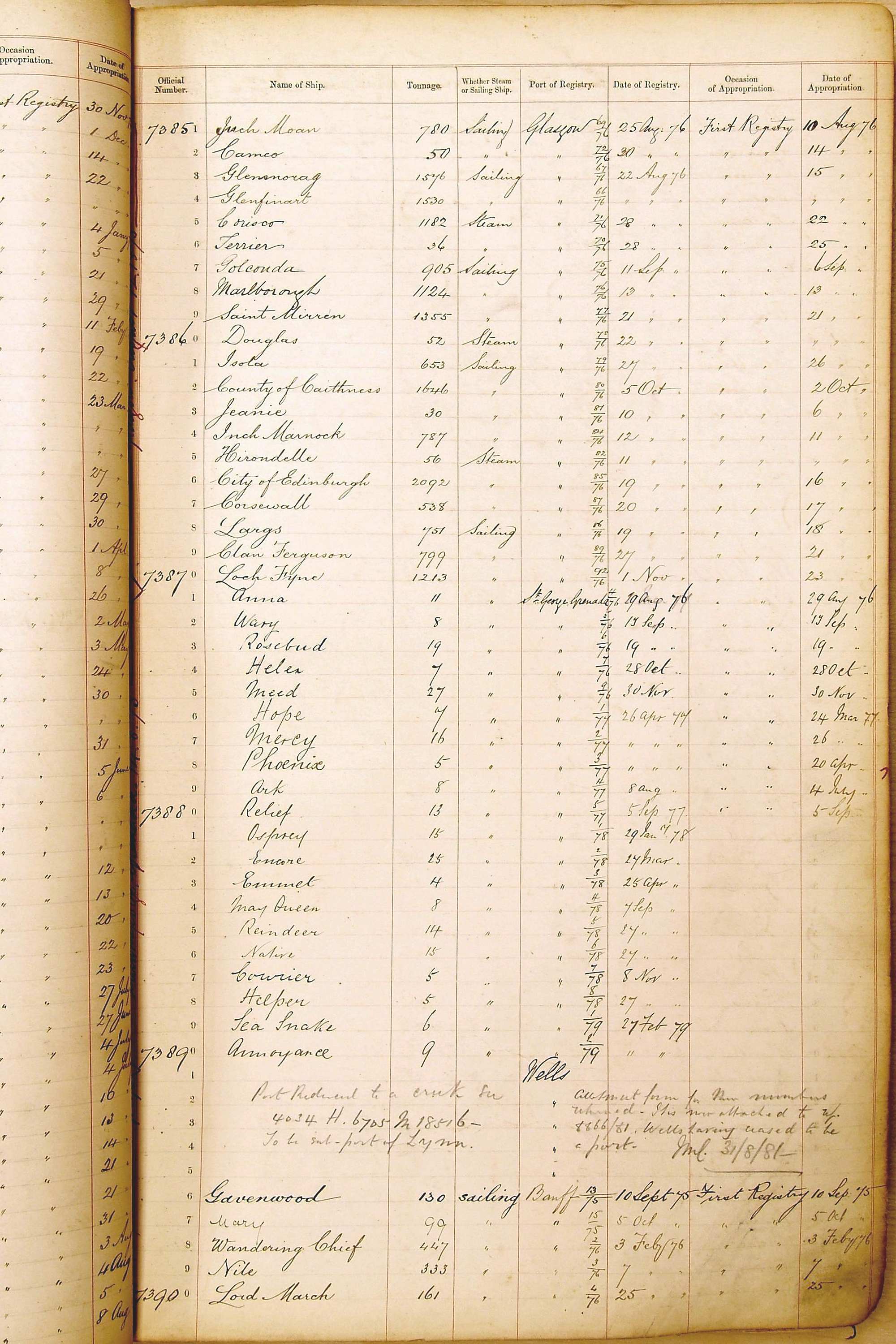 The ship names recorded are those that the ships carried at the time that their official numbers were allocated - changes are sometimes noted, but the best source for changes of name are the shipping registers for the port, or alternatively the Mercantile Navy List.