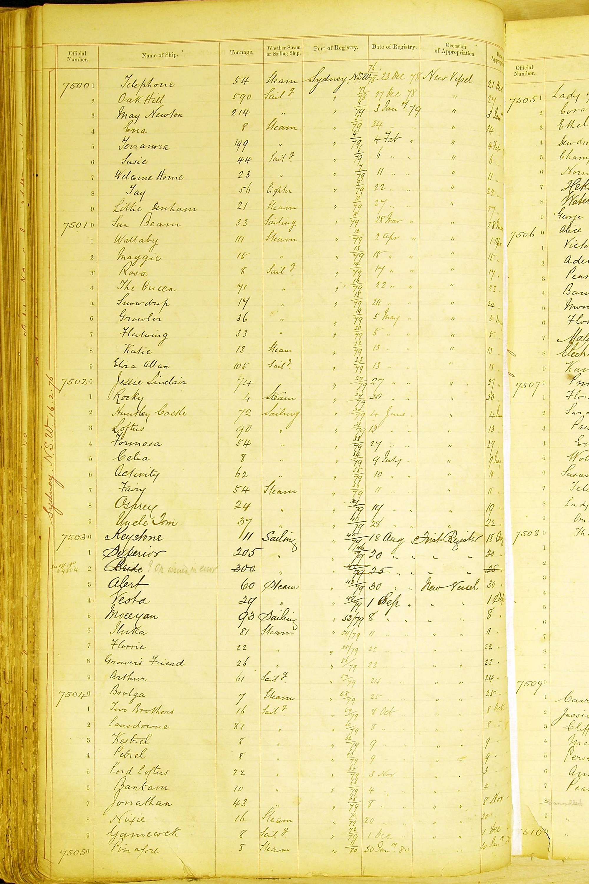 The ship names recorded are those that the ships carried at the time that their official numbers were allocated - changes are sometimes noted, but the best source for changes of name are the shipping registers for the port, or alternatively the Mercantile Navy List.