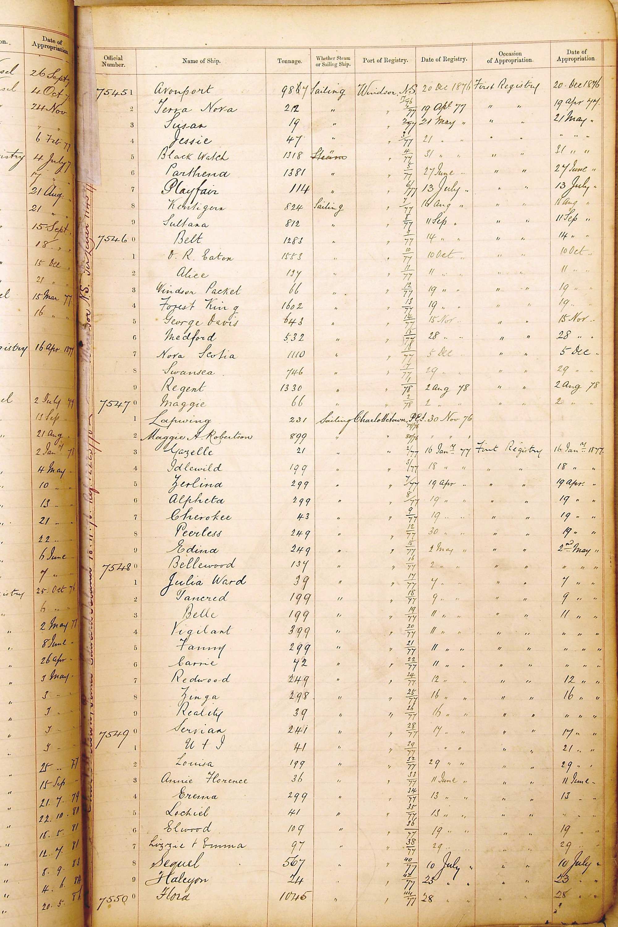 Bear in mind that the ships names in the Appropriation Books are not the definitive name or spelling of the name, even though these are the central records for the whole system. As you can see, the entries are hand-written and derived from hand-written returns made by the various ports, themselves based on the hand-written shipping registers, based on what the port officials thought the person registering the ship was saying or had hand-written down.