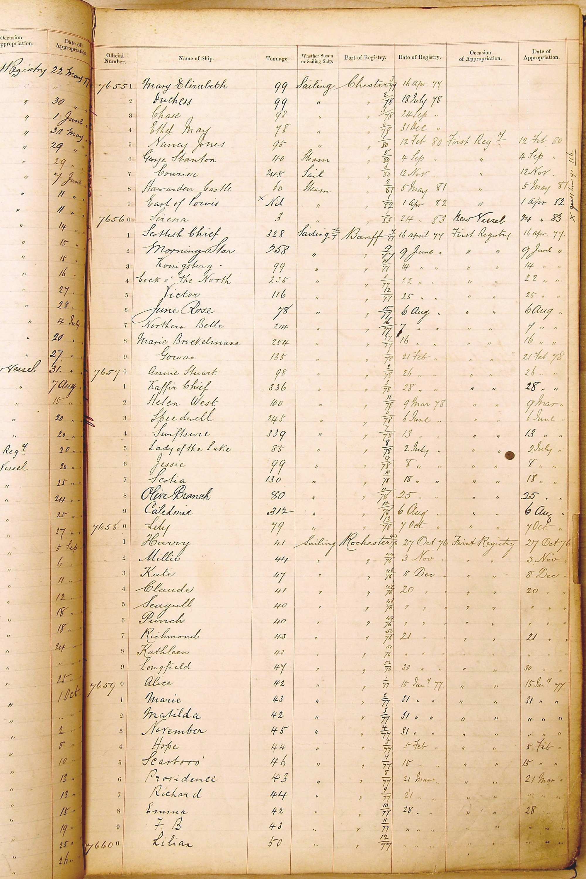 The ship names recorded are those that the ships carried at the time that their official numbers were allocated - changes are sometimes noted, but the best source for changes of name are the shipping registers for the port, or alternatively the Mercantile Navy List.