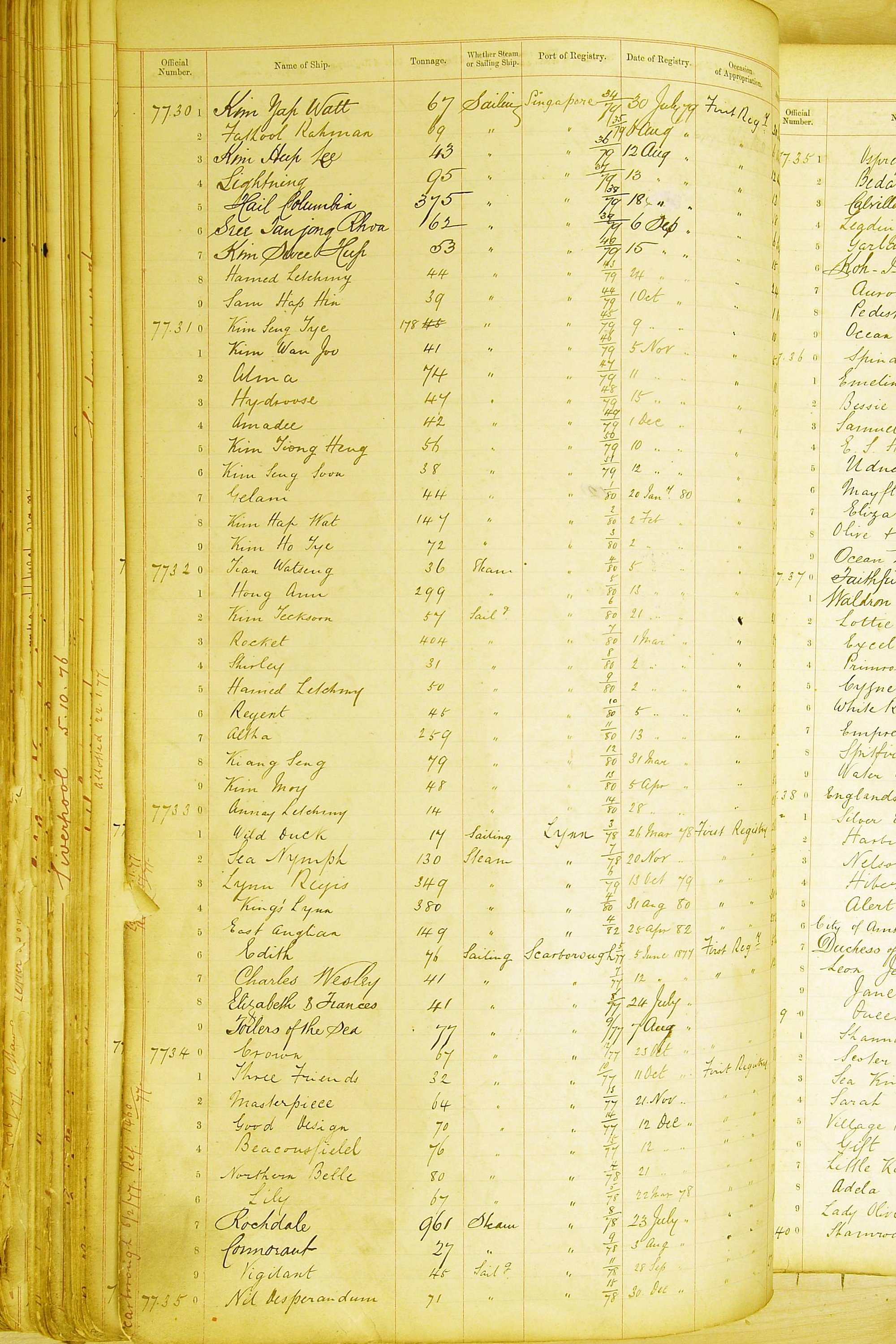 The ship names recorded are those that the ships carried at the time that their official numbers were allocated - changes are sometimes noted, but the best source for changes of name are the shipping registers for the port, or alternatively the Mercantile Navy List.