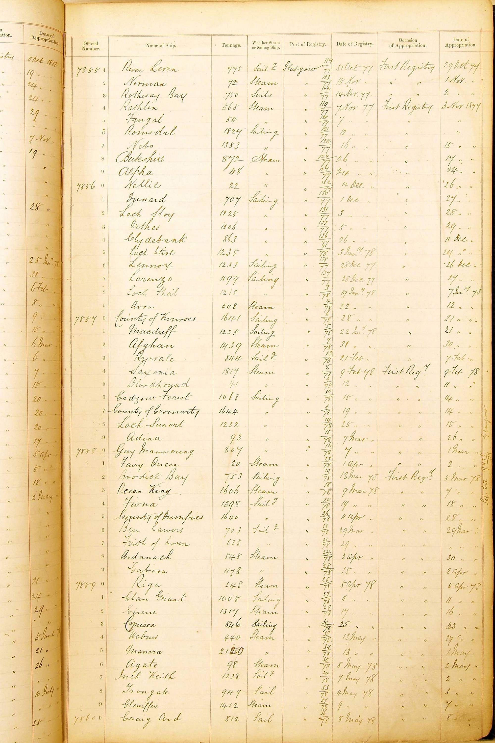 The ship names recorded are those that the ships carried at the time that their official numbers were allocated - changes are sometimes noted, but the best source for changes of name are the shipping registers for the port, or alternatively the Mercantile Navy List.