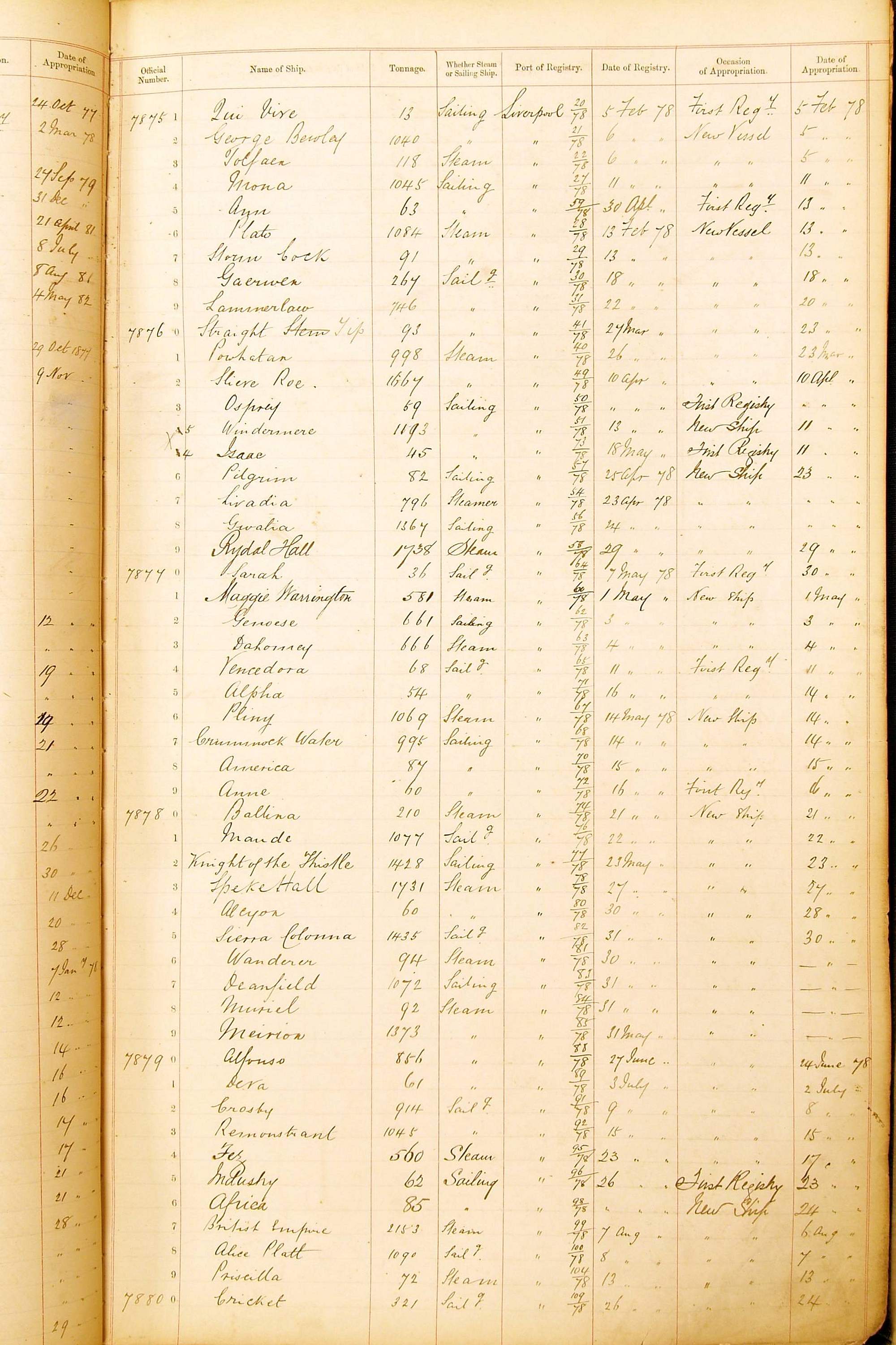 The ship names recorded are those that the ships carried at the time that their official numbers were allocated - changes are sometimes noted, but the best source for changes of name are the shipping registers for the port, or alternatively the Mercantile Navy List.