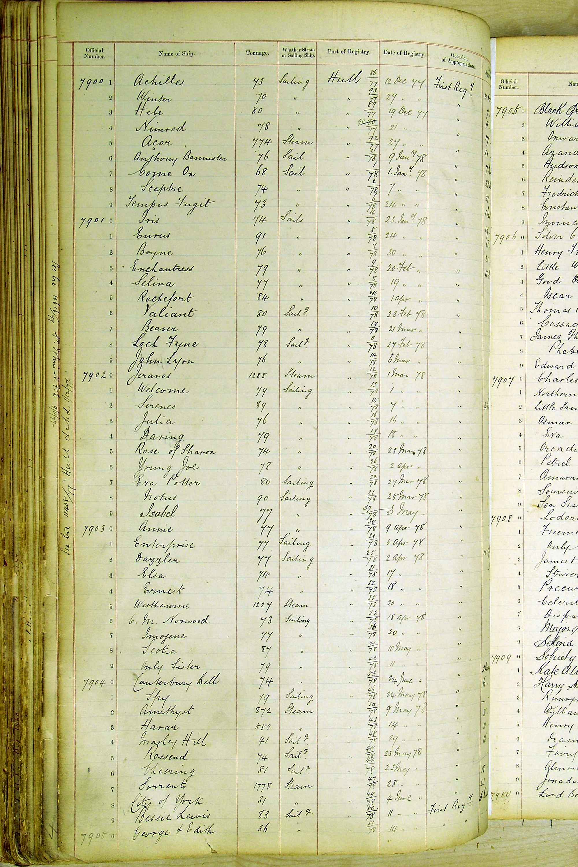 The ship names recorded are those that the ships carried at the time that their official numbers were allocated - changes are sometimes noted, but the best source for changes of name are the shipping registers for the port, or alternatively the Mercantile Navy List.