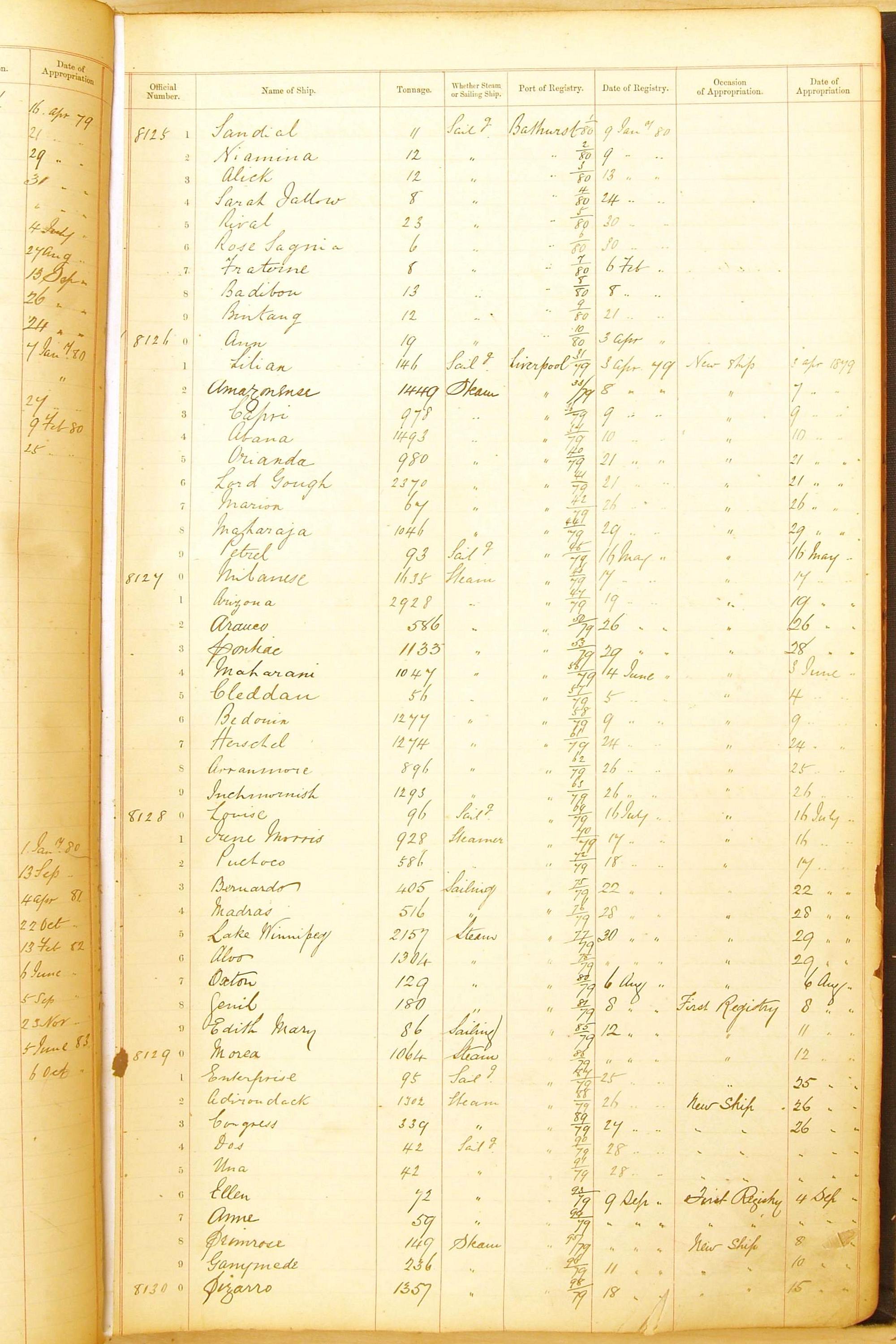 Bear in mind that the ships names in the Appropriation Books are not the definitive name or spelling of the name, even though these are the central records for the whole system. As you can see, the entries are hand-written and derived from hand-written returns made by the various ports, themselves based on the hand-written shipping registers, based on what the port officials thought the person registering the ship was saying or had hand-written down.