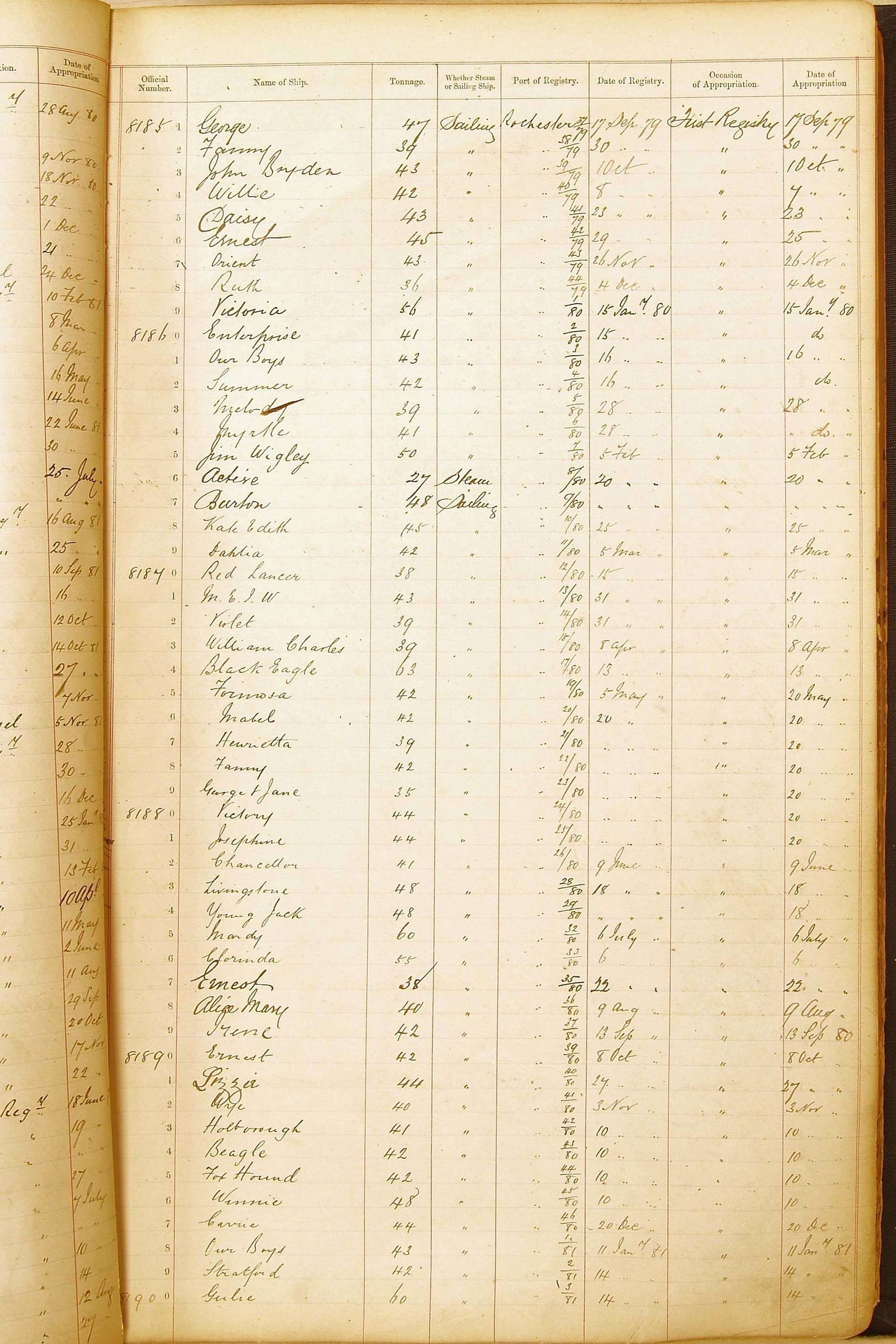 The ship names recorded are those that the ships carried at the time that their official numbers were allocated - changes are sometimes noted, but the best source for changes of name are the shipping registers for the port, or alternatively the Mercantile Navy List.