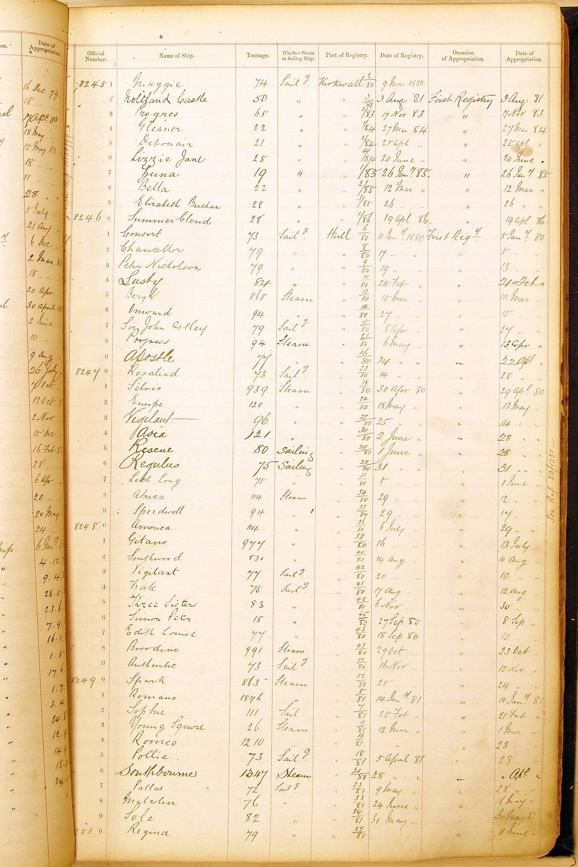 The ship names recorded are those that the ships carried at the time that their official numbers were allocated - changes are sometimes noted, but the best source for changes of name are the shipping registers for the port, or alternatively the Mercantile Navy List.