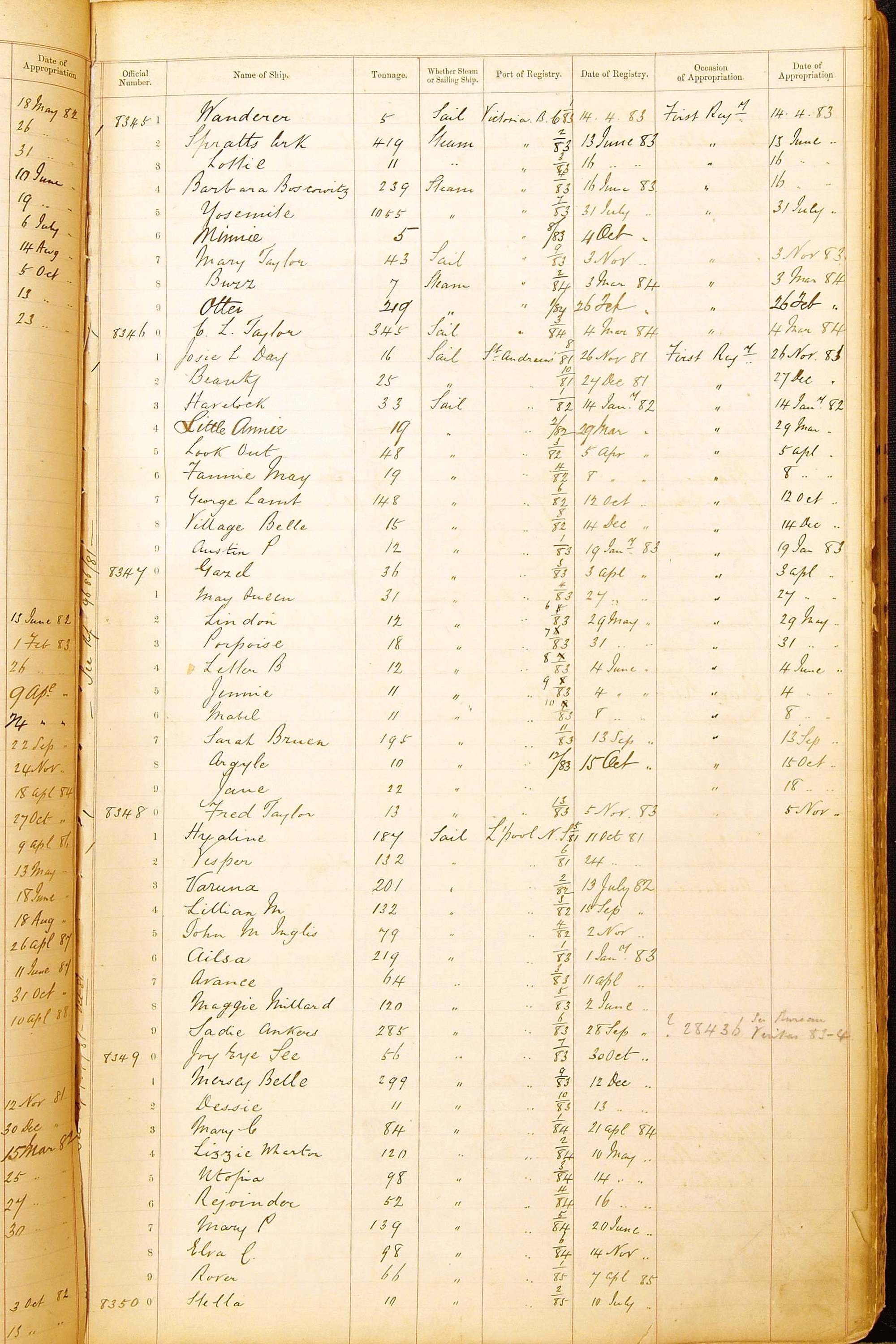 The ship names recorded are those that the ships carried at the time that their official numbers were allocated - changes are sometimes noted, but the best source for changes of name are the shipping registers for the port, or alternatively the Mercantile Navy List.