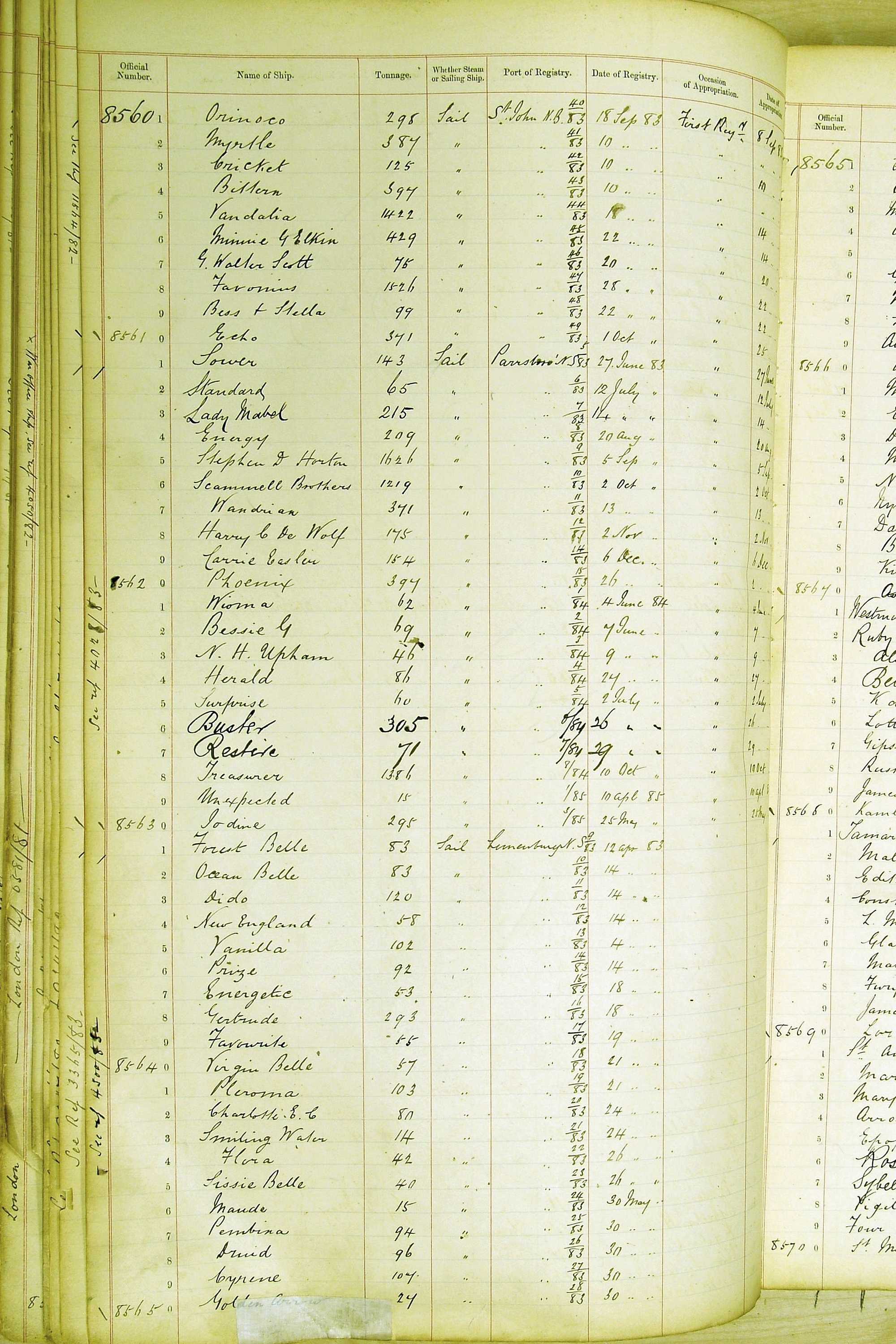 When the system of official numbers began on 16 April 1855, the British Ports of Registry were each allocated batches of official numbers. For official numbers up to 22200 you can see this allocation as a pencil note at the top of the page where the allocation began. A summary of the first allocation is shown here: Initial allocation of official numbers