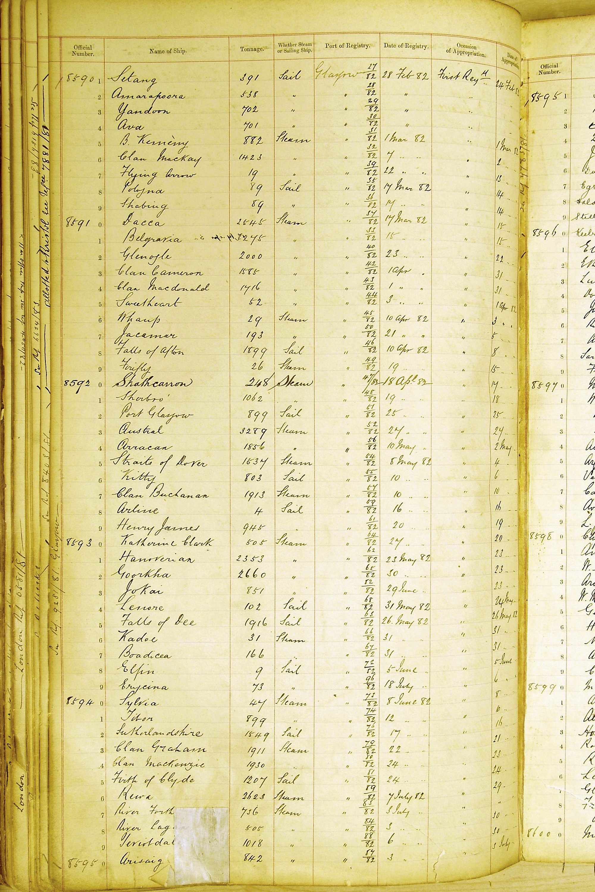 The ship names recorded are those that the ships carried at the time that their official numbers were allocated - changes are sometimes noted, but the best source for changes of name are the shipping registers for the port, or alternatively the Mercantile Navy List.